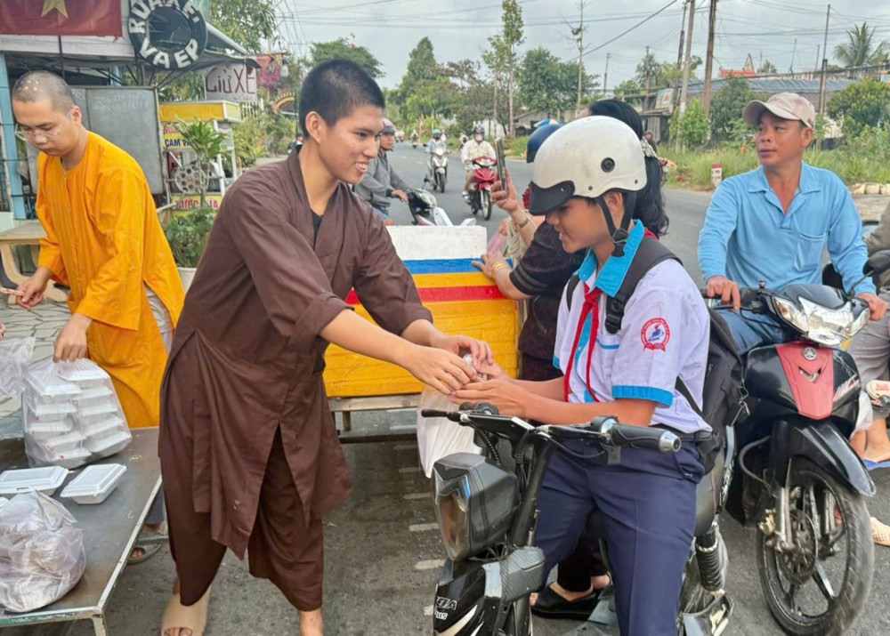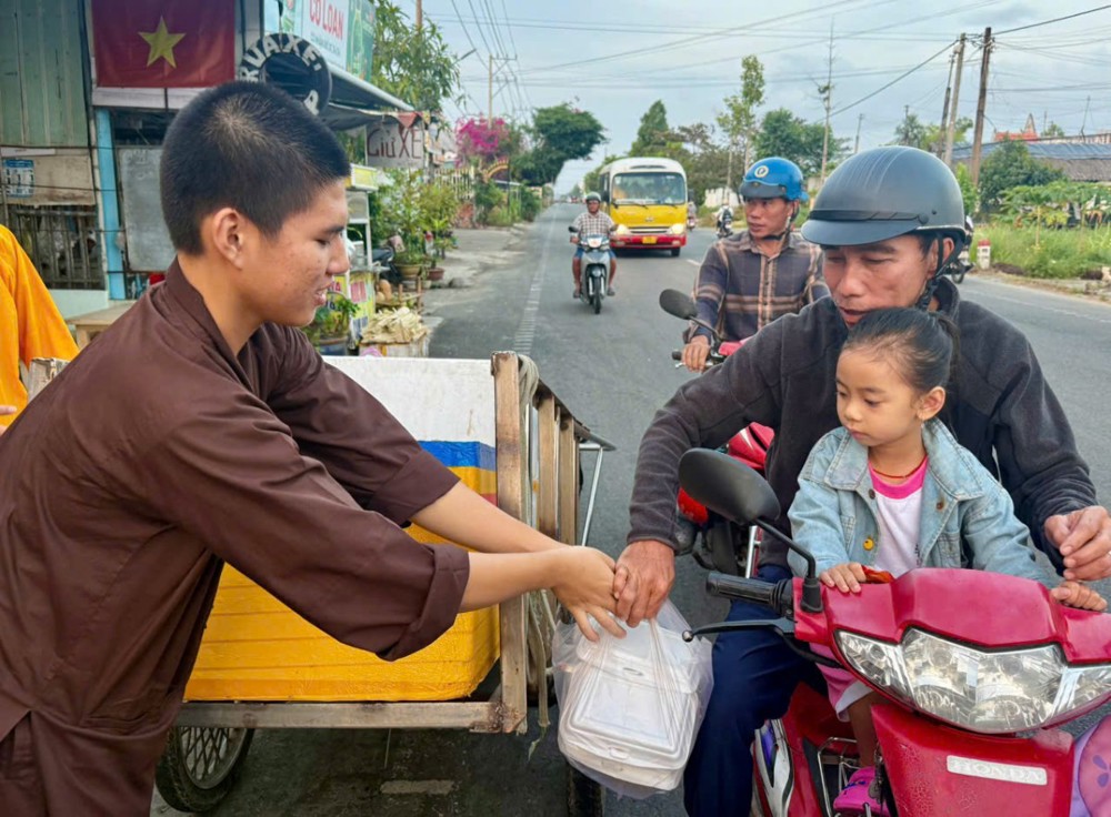 Hoạt động ý nghĩa này do Đại đức Thích Thiện Phước, trụ trì chùa Liên Hoa, hướng dẫn chư Ni cùng quý Phật tử bổn tự trực tiếp thực hiện. Từ khâu sơ chế, nấu nướng đến trao tận tay từng suất ăn cho người dân đều được chuẩn bị chu đáo, bảo đảm dinh dưỡng và an toàn vệ sinh thực phẩm, qua đó gửi gắm tình thương và sự sẻ chia trong những ngày cuối năm.
