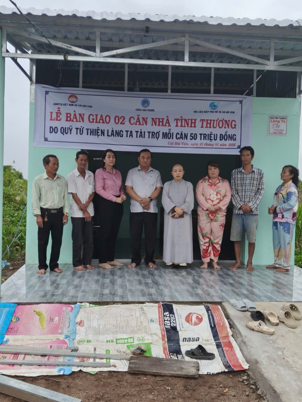 PSO- Ngày 07/1/2025, SC. Thích Nữ Diệu Minh, Chánh Thư ký PBNG PG tỉnh, trụ trì chùa Vạn Phước (xã Nguyễn Việt Khái) phối hợp cùng địa phương thực hiện lễ bàn giao nhà tinh thương cho 4 hộ gia đình tại phường Lý Văn Lâm, xã Nguyễn Việt Khái và xã Cái Đôi Vàm
