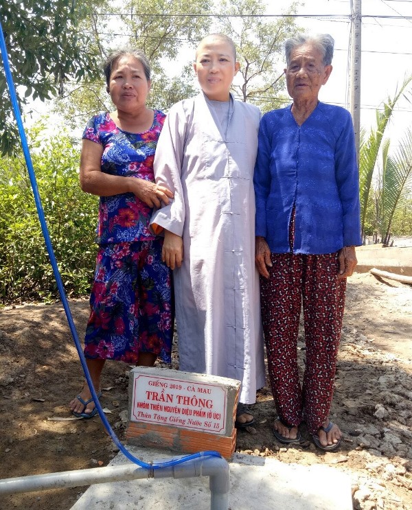 Sư cô Thích Nữ Diệu Minh - Phó trưởng Ban Trị sự Giáo Hội Phật Giáo Việt Nam huyện Phú Tân, trụ trì chùa Vạn Phước tặng giếng nước sạch cho người dânĐược biết, nguồn kinh phí của đợt từ thiện này là sư cô Diệu Minh vận động nhóm Thiện nguyện Diệu Phẩm tại Úc Châu tài trợ, trong đó kinh phí hỗ trợ 2 căn nhà 70 triệu và 12 giếng nước 60 triệu, tổng kinh phí 130 triệu đồng.