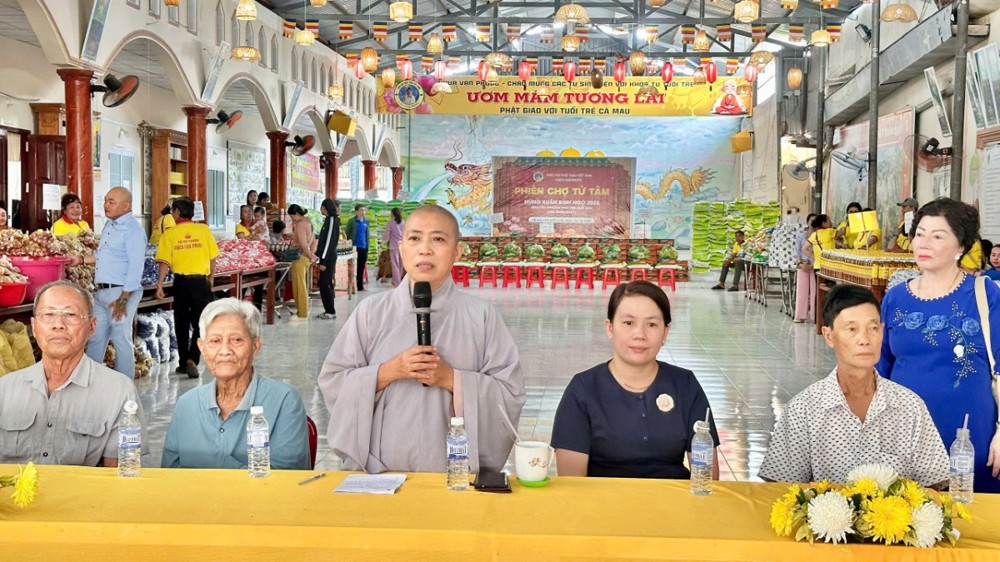 PSO- Chiều ngày 02/02/2026 (15 tháng Chạp Ất Tỵ) tại chùa Vạn Phước (ấp Lê Năm, xã Nguyễn Việt Khái, tỉnh Cà Mau) Sư cô Thích Nữ Diệu Minh, Chánh Thư ký PBNG Phật giáo tỉnh, trụ trì chùa, phối hợp cùng chánh quyền địa phương tổ chức phiên chợ Từ Tâm mừng Xuân Bính Ngọ cho 500 hộ gia đình có hoàn cảnh khó khăn tại địa phương.