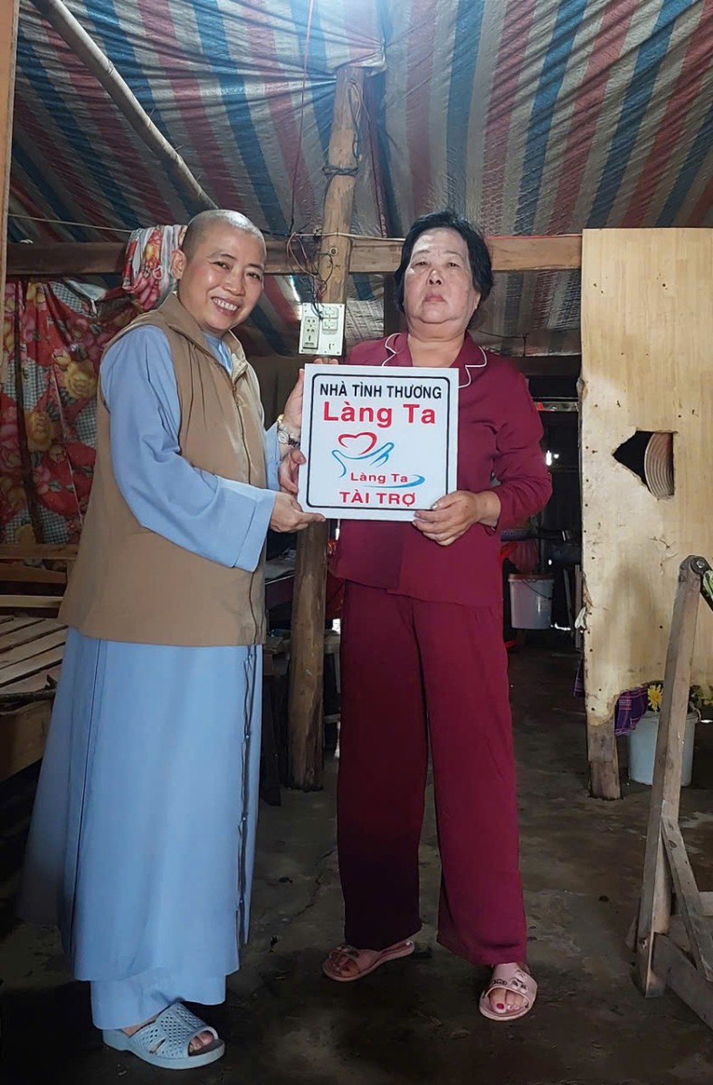 Đại diện địa phương cho biết, căn nhà cũ của ông Nao bị hỏa hoạn, gia đình lại không đủ tiền để xây dựng lại. Được chùa Vạn Phước hỗ trợ mà sau một tháng nỗ lực thi công đến nay đã hoàn thành. Xin cảm ơn Sư cô trụ trì cùng quỹ Làng Ta đã giúp đỡ kinh phí.