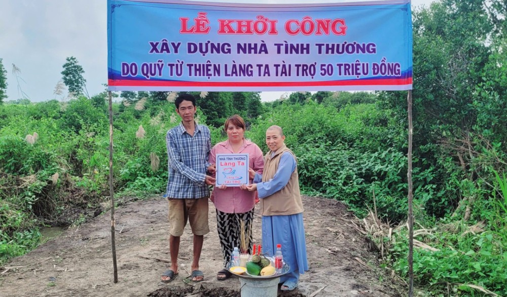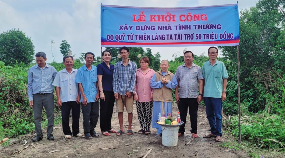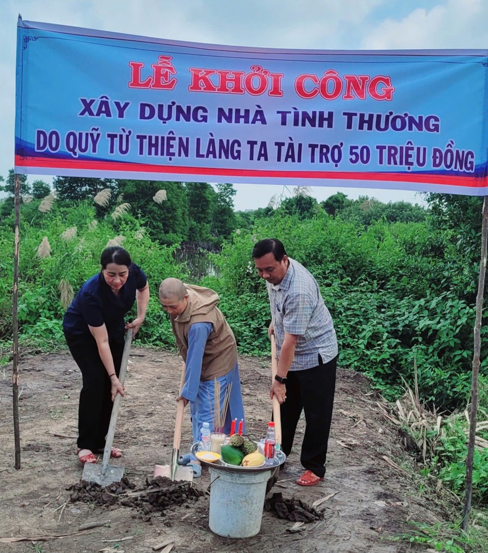 PSO- Ngày 25/11/2025, được sự hỗ trợ của quỹ từ thiện Làng Ta, Sư cô Thích Nữ Diệu Minh, trụ trì chùa Vạn Phước- ấp Lê Năm, xã Nguyễn Việt Khái, đã trao nhà Tình Thương cho hộ ông Mai Văn Nao và khởi công xây dựng 3 căn nhà Tình Thương tại hai xã Nguyễn Việt Khái và Cái Đôi Vàm.