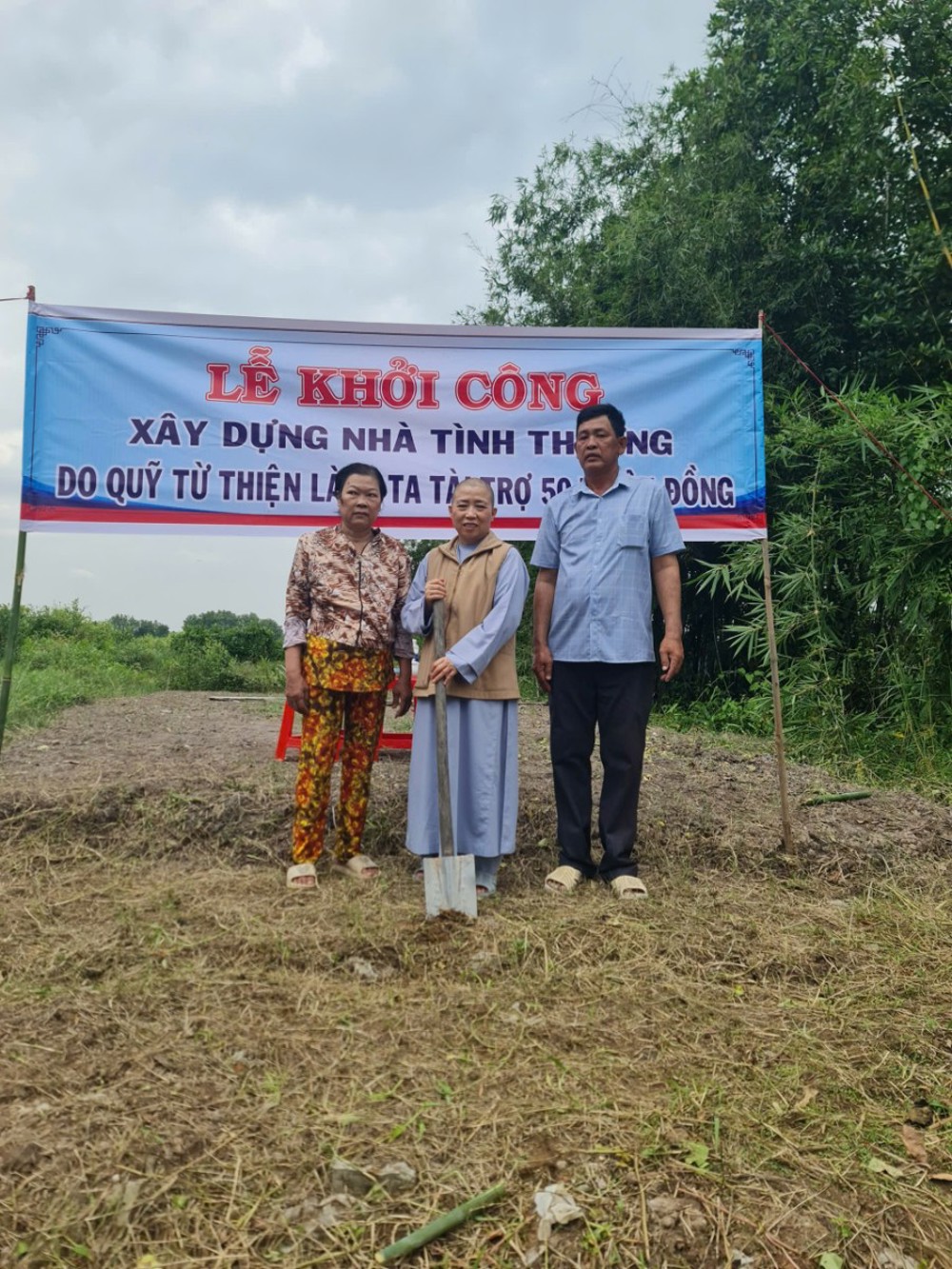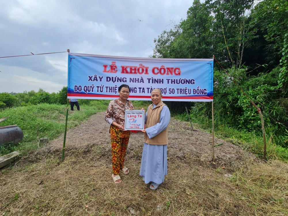 Sau đó, tại ấp Rạch Chèo, Sư cô Diệu Minh cũng đã làm lễ khởi công xây dựng nhà Tình Thương cho bà Lê Ngọc Nữ.