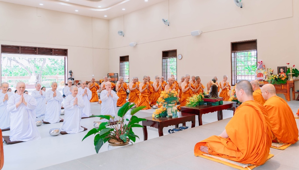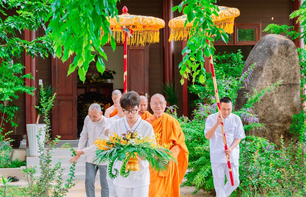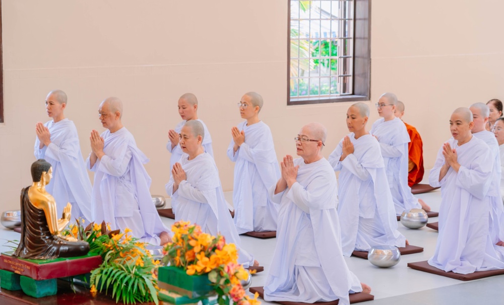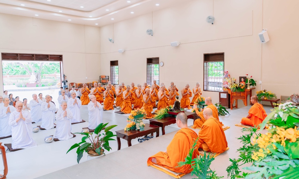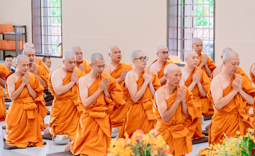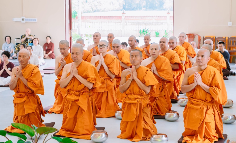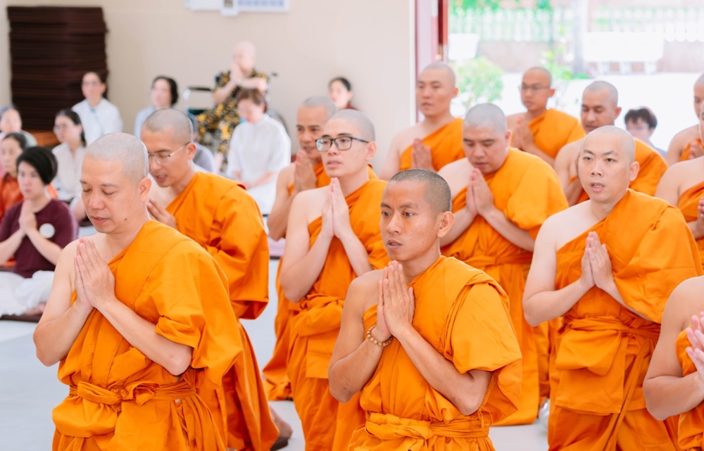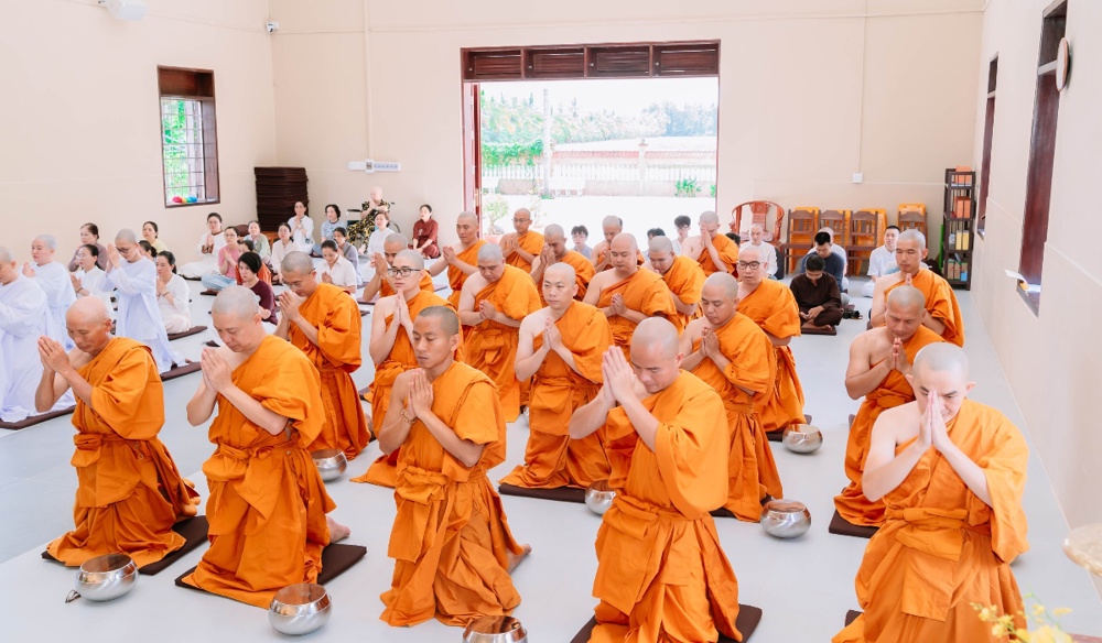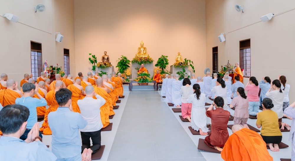 Trong giờ phút thiêng liêng của buổi lễ, dưới sự chứng minh của chư Tôn đức, các thiền sinh đã đồng quỳ trước Tam Bảo, chí thành đảnh lễ và cung thỉnh Trưởng lão Hòa thượng thực hiện nghi thức tế độ xuất gia gieo duyên. Hình ảnh ấy gợi lên tâm nguyện xuất trần cao quý, dù chỉ trong một thời gian ngắn, nhưng cũng đủ để gieo vào tâm thức những hạt giống lành của đời sống phạm hạnh và hướng thượng.