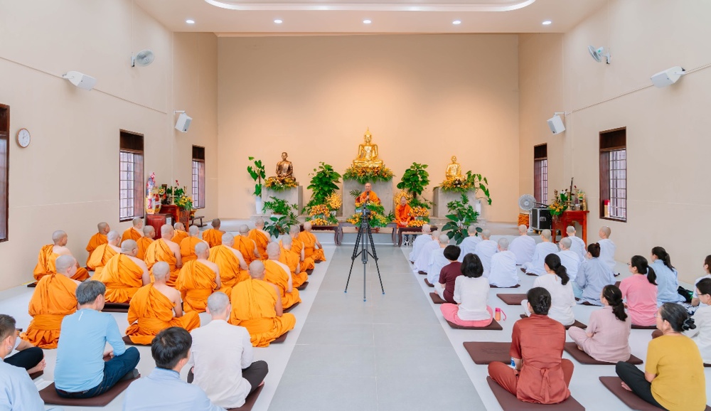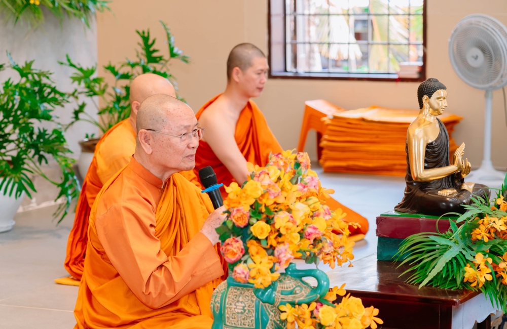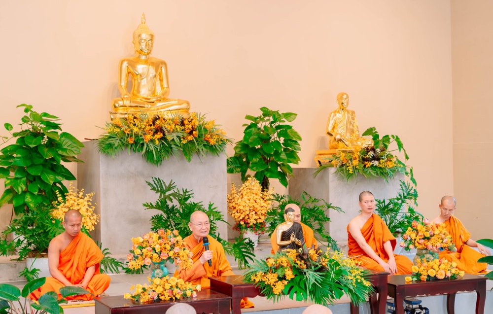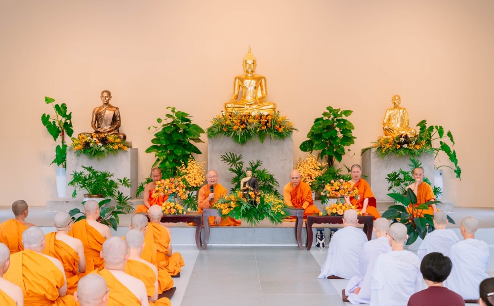 Ban đạo từ tại lễ khai giảng, Trưởng lão Hòa thượng Viên Minh bày tỏ niềm hoan hỷ trước tinh thần tinh tấn của đạo tràng, đồng thời sách tấn hành giả cần sống sâu sắc với thực tại, thấy rõ thân và tâm như chúng đang là. Theo lời Hòa thượng, sự tu tập chân chính không nằm ở hình thức bên ngoài, mà ở khả năng nhận biết rõ ràng những gì đang diễn ra trong hiện tại, không bị cuốn theo vọng tưởng, ngã chấp hay những dao động nội tâm. Dù đang sống trong thiền môn hay giữa đời thường, người biết thực tập chánh niệm vẫn có thể làm chủ thân tâm, nuôi dưỡng an lạc và từng bước chuyển hóa khổ đau.