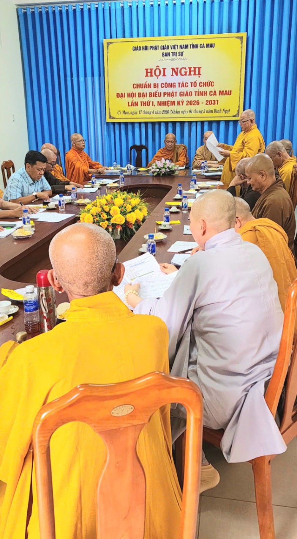 PSO- Chiều ngày 17/4/2026 tại trụ sở Ban Trị sự Phật giáo tỉnh Cà Mau (Sắc tứ Quan Âm cổ tự, phường An Xuyên), Hòa thượng Thạch Hà – Ủy viên HĐTS, Trưởng Ban Trị sự GHPGVN tỉnh đã chủ trì hội nghị của Thường trực Ban Trị sự về việc chuẩn bị tổ chức Đại hội Đại biểu Phật giáo tỉnh lần thứ nhất, nhiệm kỳ 2026-2031.
