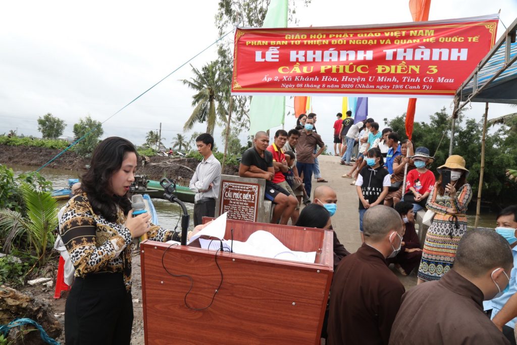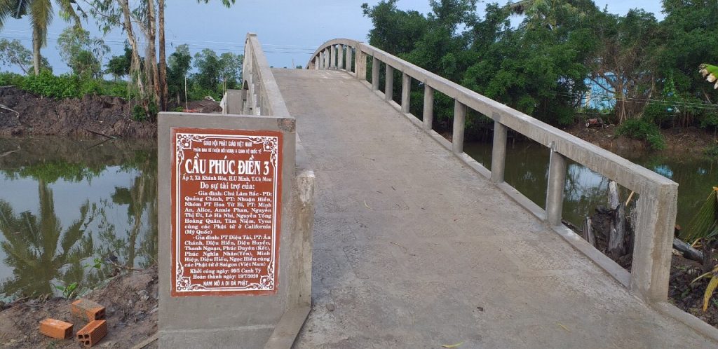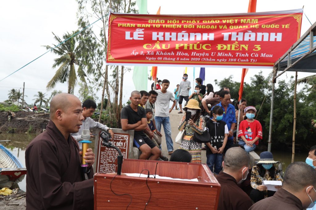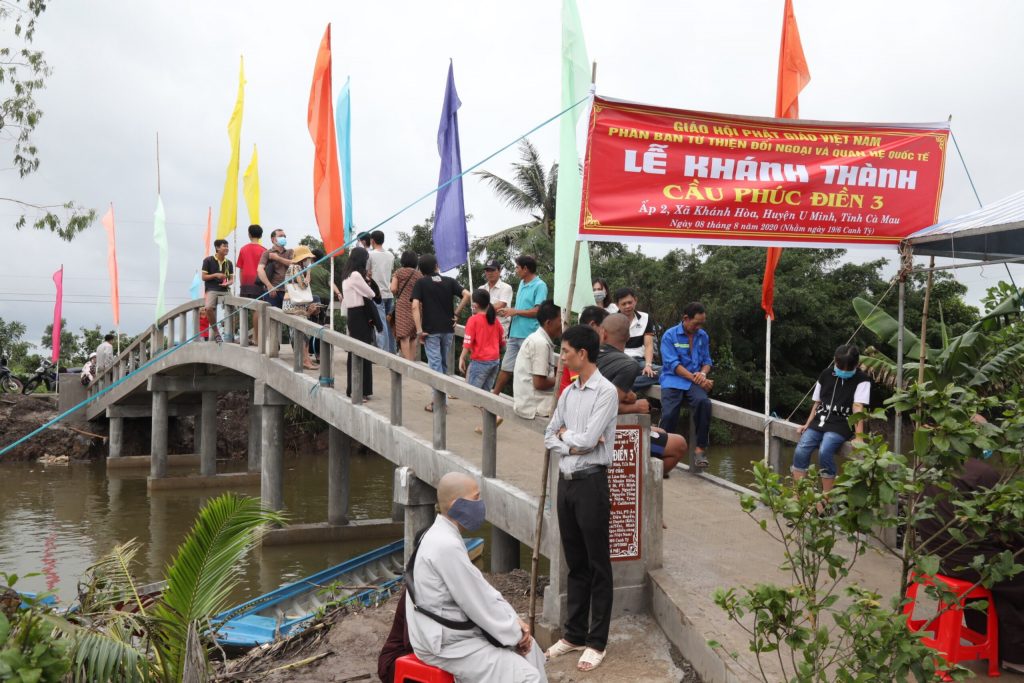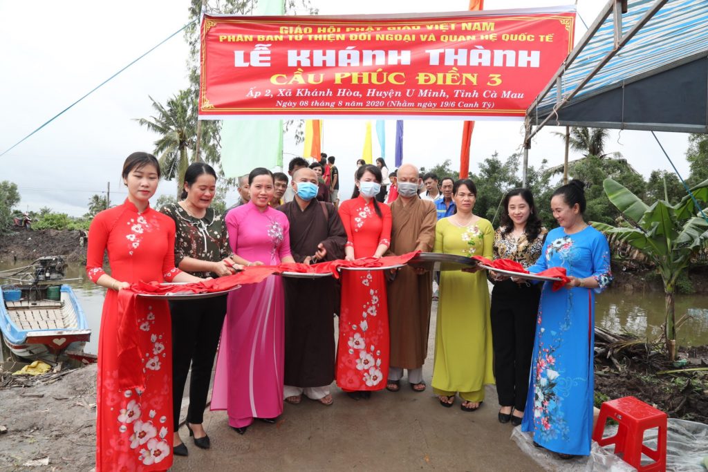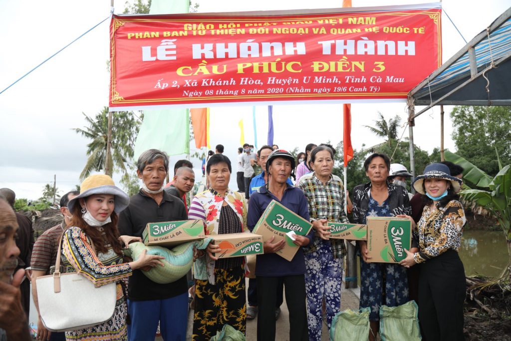 Là những người con Phật, thể theo tâm hạnh từ bi cứu khổ, độ sanh của Mẹ hiền Quan Âm nói riêng và toàn thể chư Phật, chư Đại Bồ tát mười phương, ngày 08/8/2020 (nhằm ngày 19/6 năm Canh Tý), Phân ban Từ thiện Đối ngoại và Quan hệ (ĐN&QH) Quốc tế thuộc Ban Từ thiện Xã hội Trung ương GHPGVN cùng quý Phật tử, các nhà hảo tâm và quý mạnh thường quân trong nước và nước ngoài đến xã Khánh Hoà, huyện U Minh, tỉnh Cà Mau để khánh thành, bàn giao đưa vào sử dụng cầu giao thông nông thôn Phúc Điền 3 và trao tặng những phần quà thân thương đến bà con khó khăn nơi đây.
