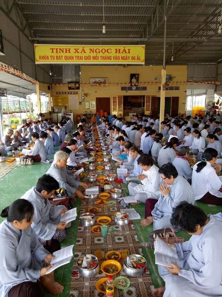 Với thời tiết như vậy, công việc gia đình bề bộn nhưng quý Phật tử vẫn dành thời gian để trở về Tịnh xá Ngọc Hải tu tập một ngày 6/3/al hàng tháng, nhằm nâng cao kiến thức bản thân, thông qua sự chỉ dạy của quý Sư cô, từ đó áp dụng vào cuộc sống mình thêm an lạc và phước báu, phải nói đây là sự quyết tâm hoàn thiện mình của người Phật tử.