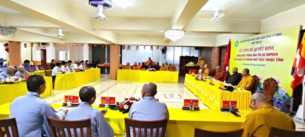 PSO- Sáng ngày 24/6/2025 (29 tháng 5 Ất Tỵ) tại Sắc tứ Quan Âm cổ tự- Văn phòng Ban Trị sự Phật giáo tỉnh Cà Mau, Ban Thường trực GHPGVN tỉnh đã tổ chức lễ Công bố Quyết định dừng hoạt động 4 Ban Trị sự: Thành phố Cà Mau, huyện Thới Bình, huyện Đầm Dơi và huyện Phú Tân.