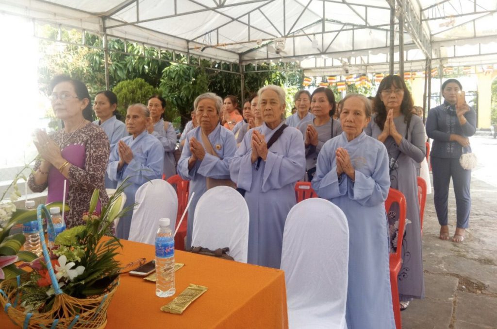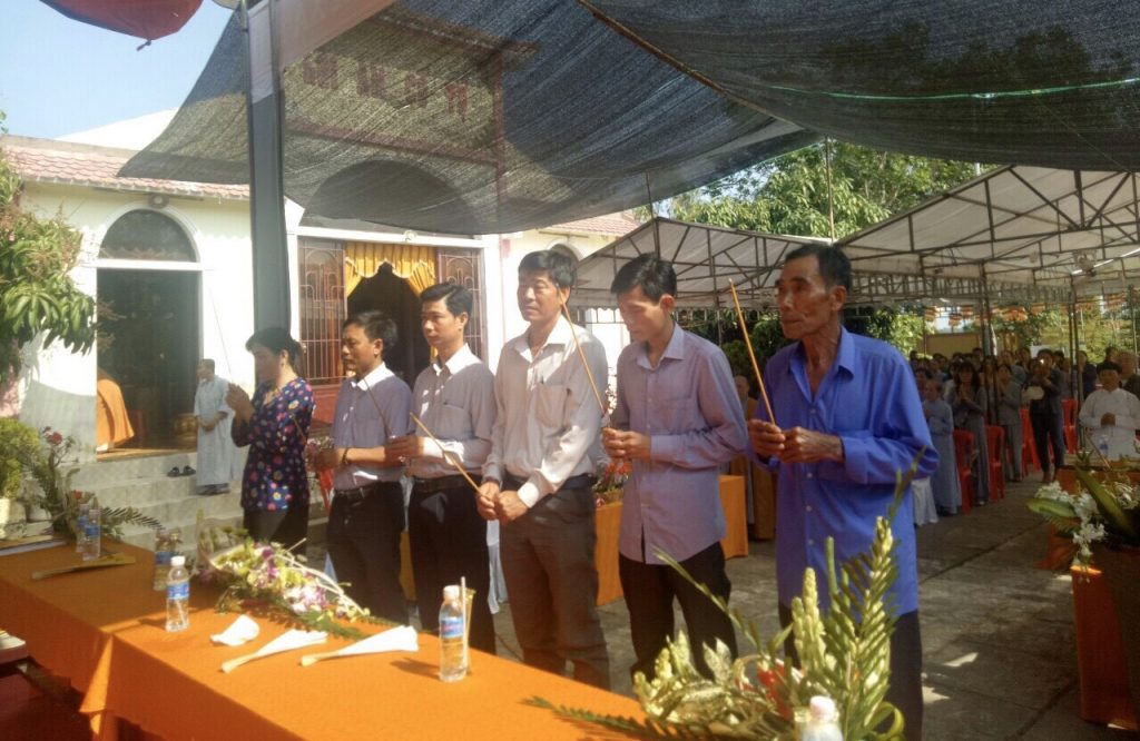 Về phía chính quyền có ông Huỳnh Nhựt Nam - Công an tỉnh Cà Mau; bà Đặng Kim Âu - Phó Chủ tịch UBMTTQ huyện; Ông Lê Văn Dãy - Phó ban Dân vận huyện Thới Bình cùng gần 300 Phật tử về tham dự.