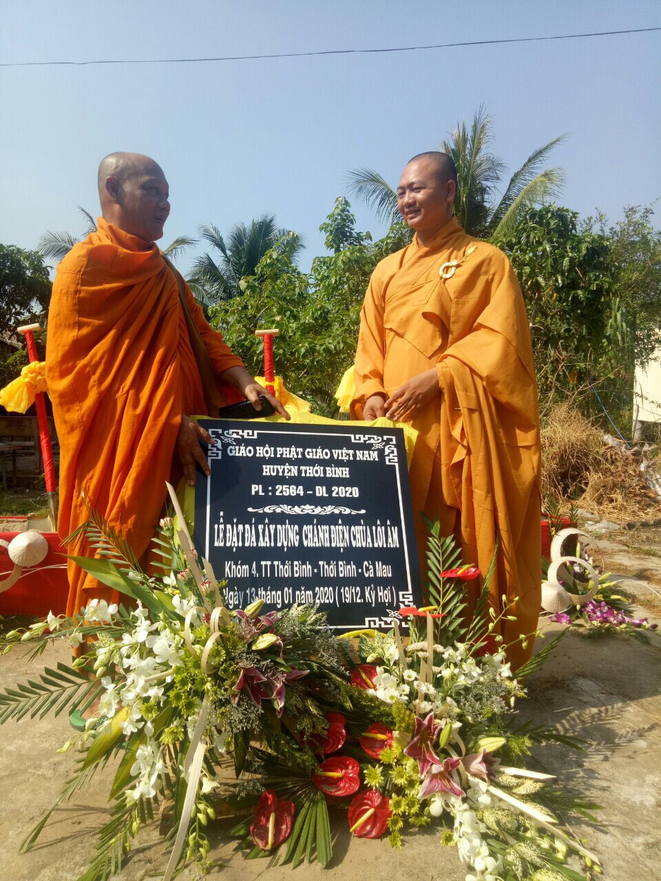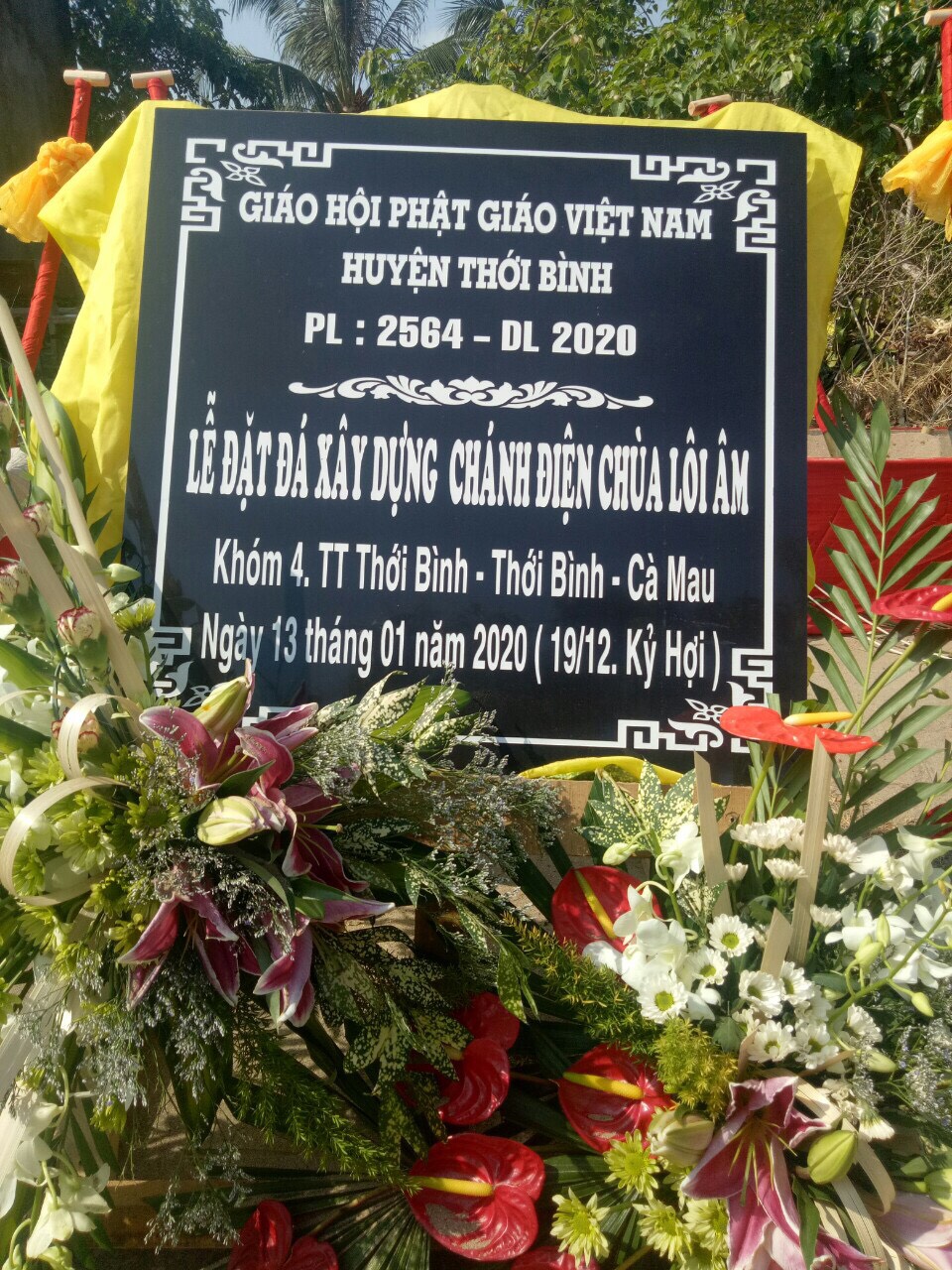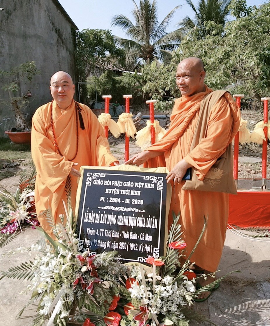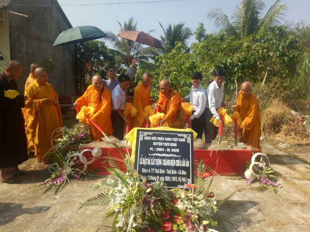 PSO - Sáng ngày 13/1/2020 (nhằm ngày 19/12 Kỷ Hợi), Đại đức Thích Trí Thiện, Trụ trì chùa Lôi Âm (khóm 4, Thị trấn Thới Bình, huyện Thới Bình, tỉnh Cà Mau) đã cùng bổn đạo Phật tử long trọng tổ chức lễ đặt đá xây dựng chánh điện chùa.