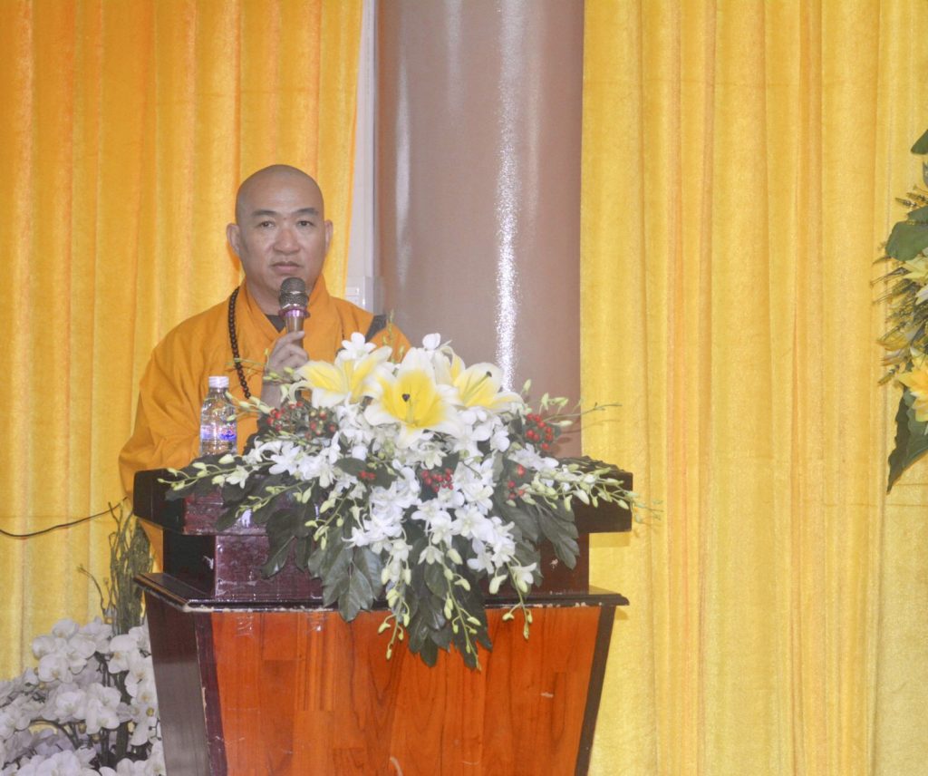 Trước khi kết thúc buổi lễ, TT. Thích Phước Nguyên thay mặt BTC dâng lời cảm tạ đến chư Tôn đức và toàn thể chúng hội. Sự hiện diện của Quý Ngài là động lực lớn lao để cho BTS GHPGVN tỉnh Cà Mau luôn hoàn thành trách nhiệm.