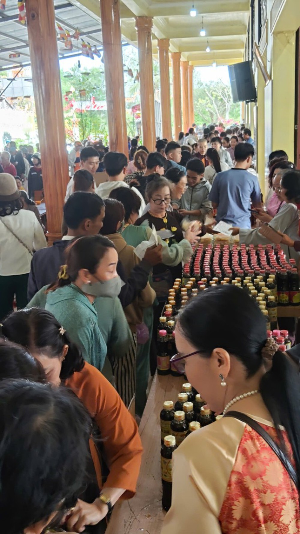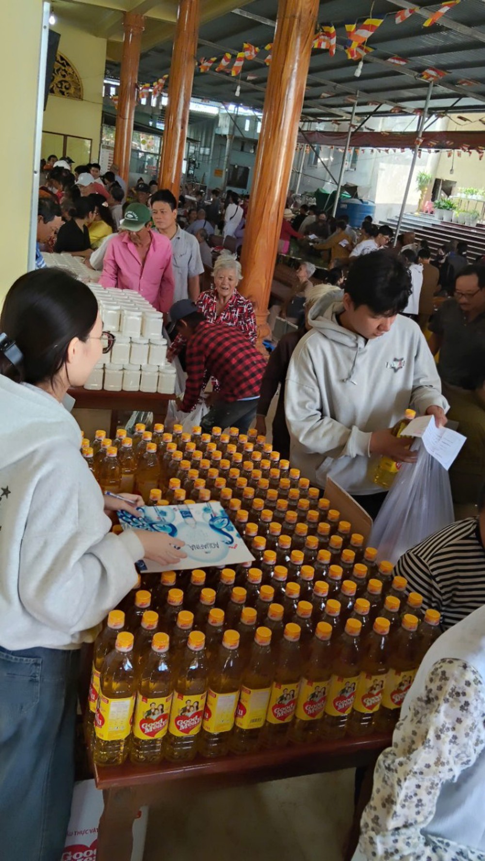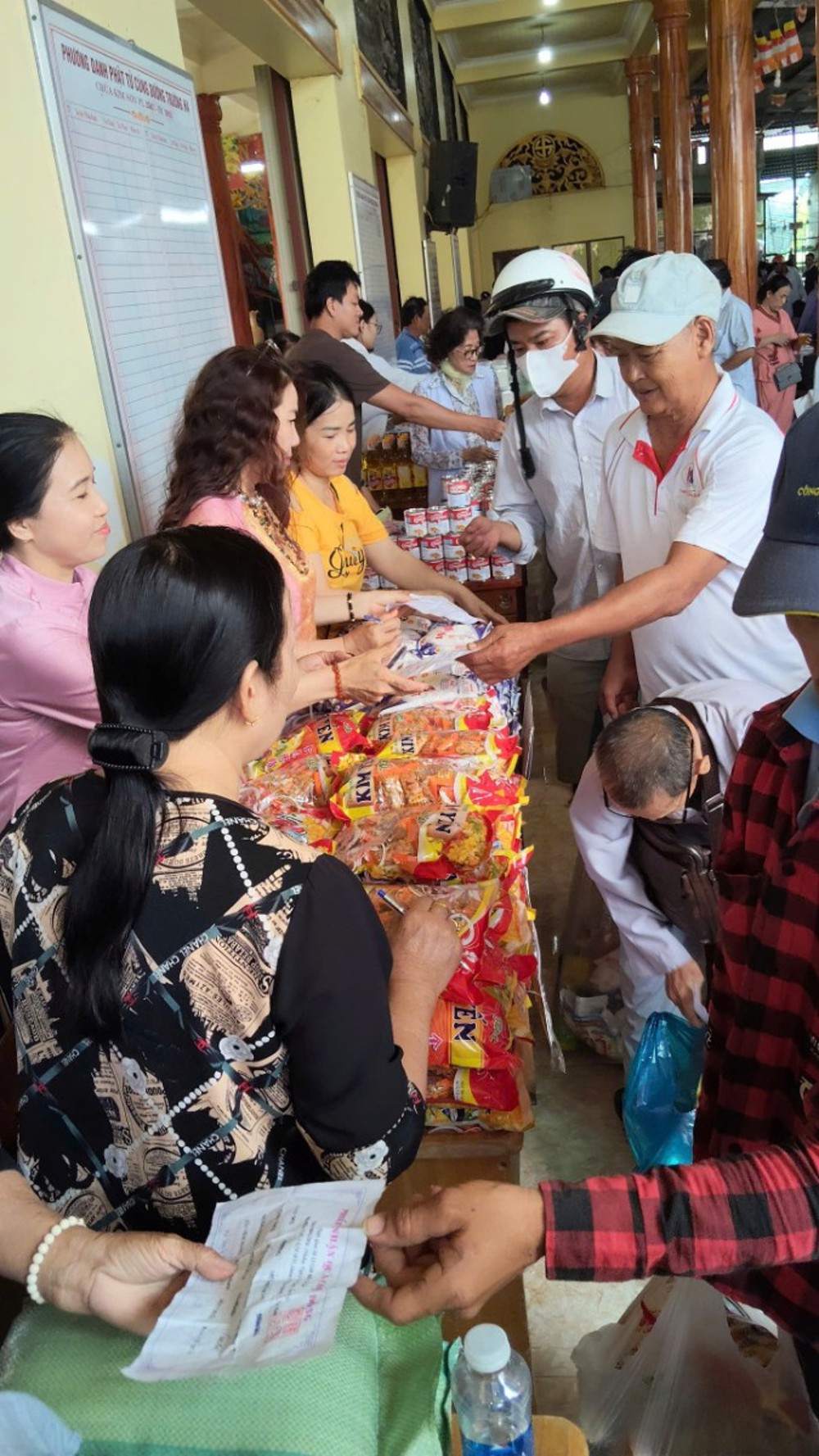 Từ đầu giờ chiều, sân chùa đã rộn ràng, nhộn nhịp người đến phiên chợ ai cũng ăn mặc gọn gàng, tươm tất, có người còn dẫn theo con cháu. Tay cầm phiếu đi chợ, ánh mắt rạng rỡ, bà con bước vào phiên chợ với tâm trạng háo hức. Tiếng chào hỏi, tiếng cười xen lẫn lời chúc năm mới khiến không gian chùa trở nên sống động, ấm áp mùa xuân tình người.