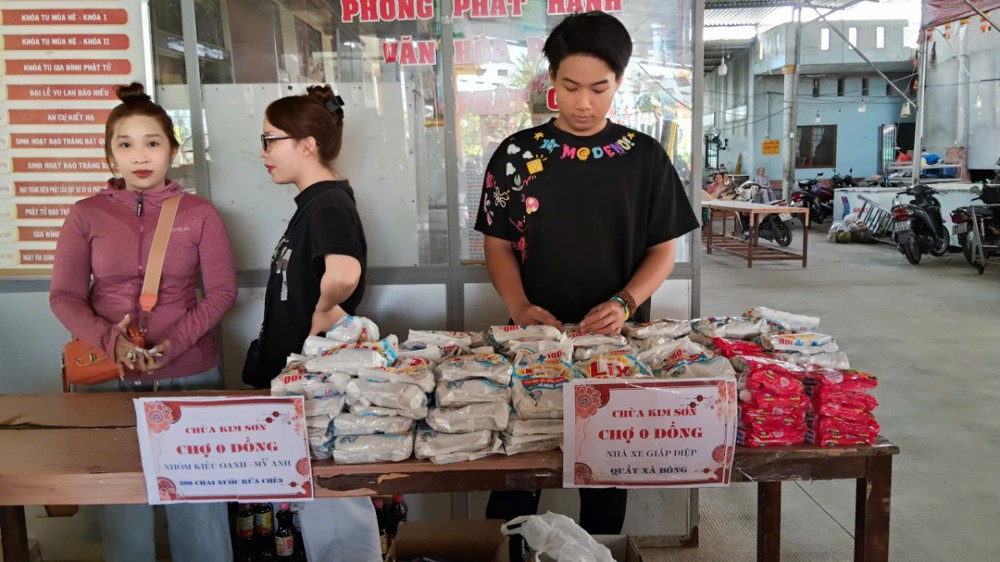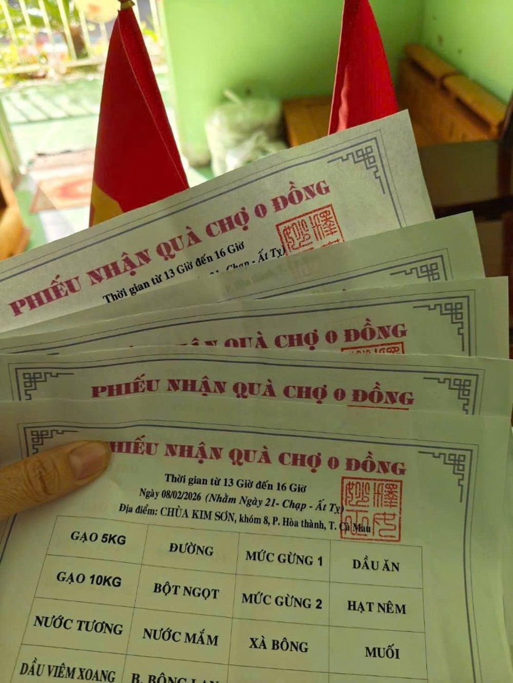 ìPSO- Chiều ngày 8/2/2026, tại chùa Kim Sơn, đường Hải Thượng Lãn Ông, phường Hòa thành, Ni sư Thích Nữ Diệu Chánh, Phó Ban Trị sự, Trưởng Ban TTXH Phật giáo tỉnh Cà Mau, trụ trì chùa phối hợp cùng các cá nhân và tổ chức đã mở phiên chợ 0 đồng chủ đề “Xuân Yêu Thương- Tết Nghĩa Tình”, đem niềm vui Tết Bính Ngọ đến với 250 hộ gia đình có hoàn cảnh khó khăn.