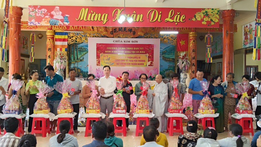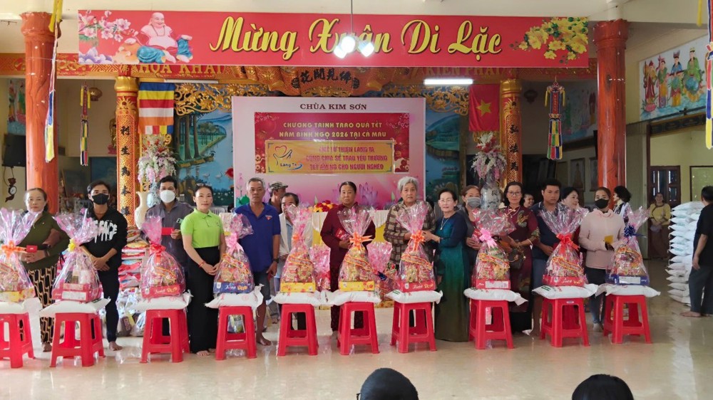 Tính chung trong dịp mừng Tết Nguyên đán năm 2026, chùa Kim Sơn đã trao tổng cộng 1.000 phần quà cho các cá nhân và hộ gia đình có hoàn cảnh khó khăn trên địa bàn tỉnh. Những phần quà ấy không chỉ giúp bà con đón Tết đủ đầy hơn, mà còn tiếp thêm niềm tin để bước qua những gian nan của đời sống thường ngày.