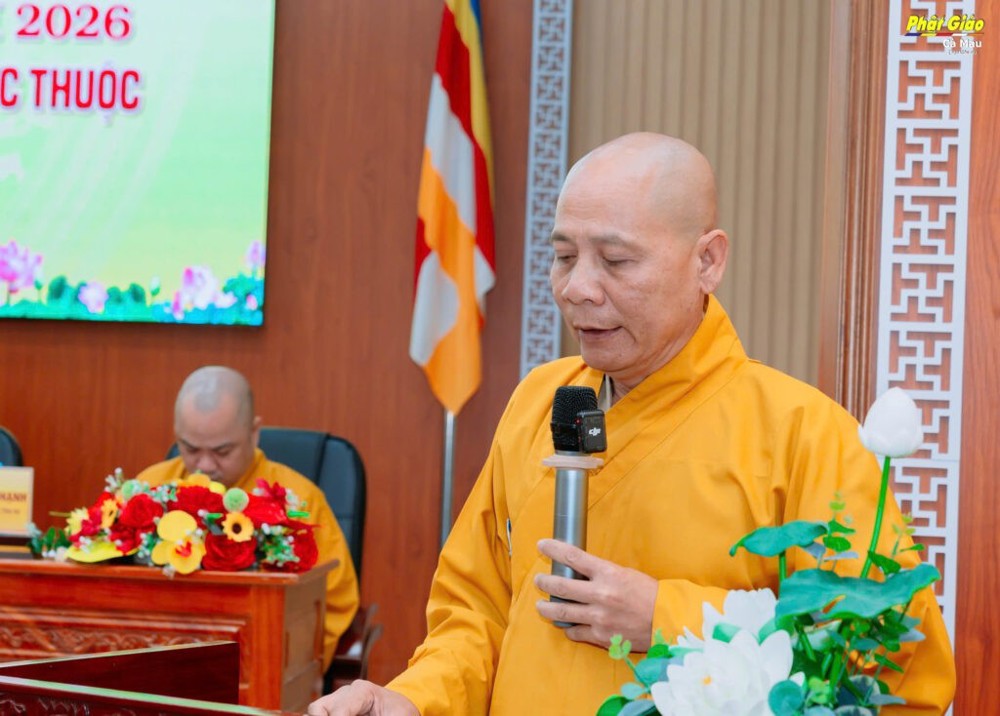Tại hội nghị, Đại đức Phước Hạnh trình bày dự thảo Báo cáo tổng kết công tác Phật sự năm 2025 và phương hướng hoạt động năm 2026. Báo cáo cho biết toàn tỉnh hiện có 231 cơ sở tự viện, trong đó 64 tự viện đã thành lập Ban Quản trị cơ sở và thực hiện đổi con dấu theo quy định.
