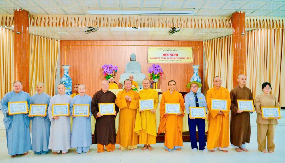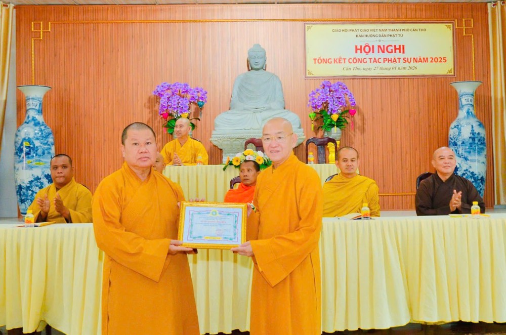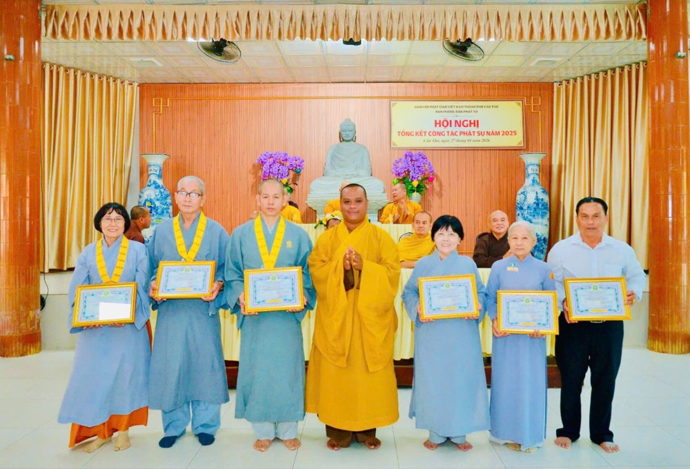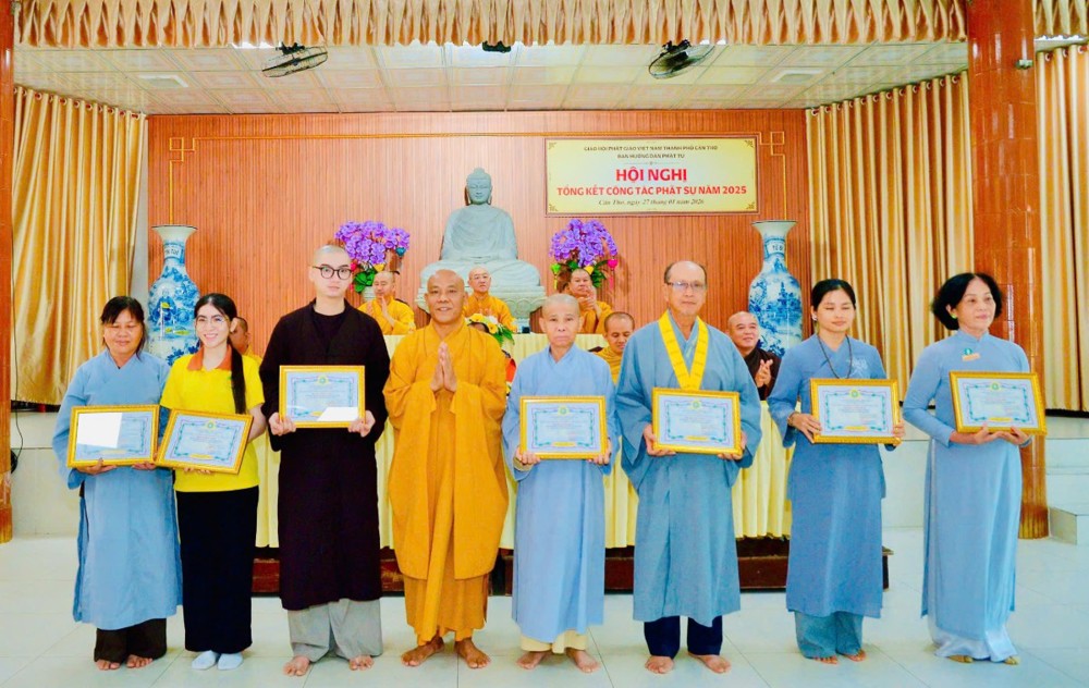 Ghi nhận những đóng góp tích cực của các tập thể và cá nhân, Ban Trị sự GHPGVN TP. Cần Thơ đã trao Bằng tuyên dương Công đức cho các đơn vị có thành tích xuất sắc; đồng thời, Thường trực Ban HDPT thành phố trao Bằng công đức nhằm khích lệ tinh thần phụng sự của chư Tôn đức Tăng Ni, quý Huynh trưởng và Cư sĩ Phật tử đã hoàn thành tốt các Phật sự trọng tâm trong năm qua.