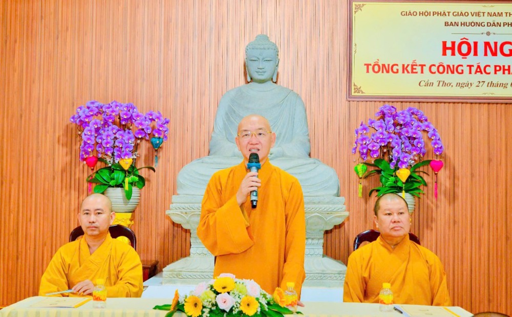 Thay mặt Ban Thư ký, ĐĐ. Thích Thiện Minh – Chánh Văn phòng Ban HDPT đã trình bày báo cáo tổng kết công tác Phật sự năm 2025, nêu bật những kết quả tích cực trong công tác hướng dẫn cư sĩ tu học, phát triển các đạo tràng và sinh hoạt Phật tử. Trên cơ sở đó, Ban HDPT TP. Cần Thơ đã đề ra phương hướng hoạt động năm 2026 với nhiều chương trình cụ thể, chú trọng nâng cao chất lượng sinh hoạt của các Phân ban và Gia đình Phật tử.
