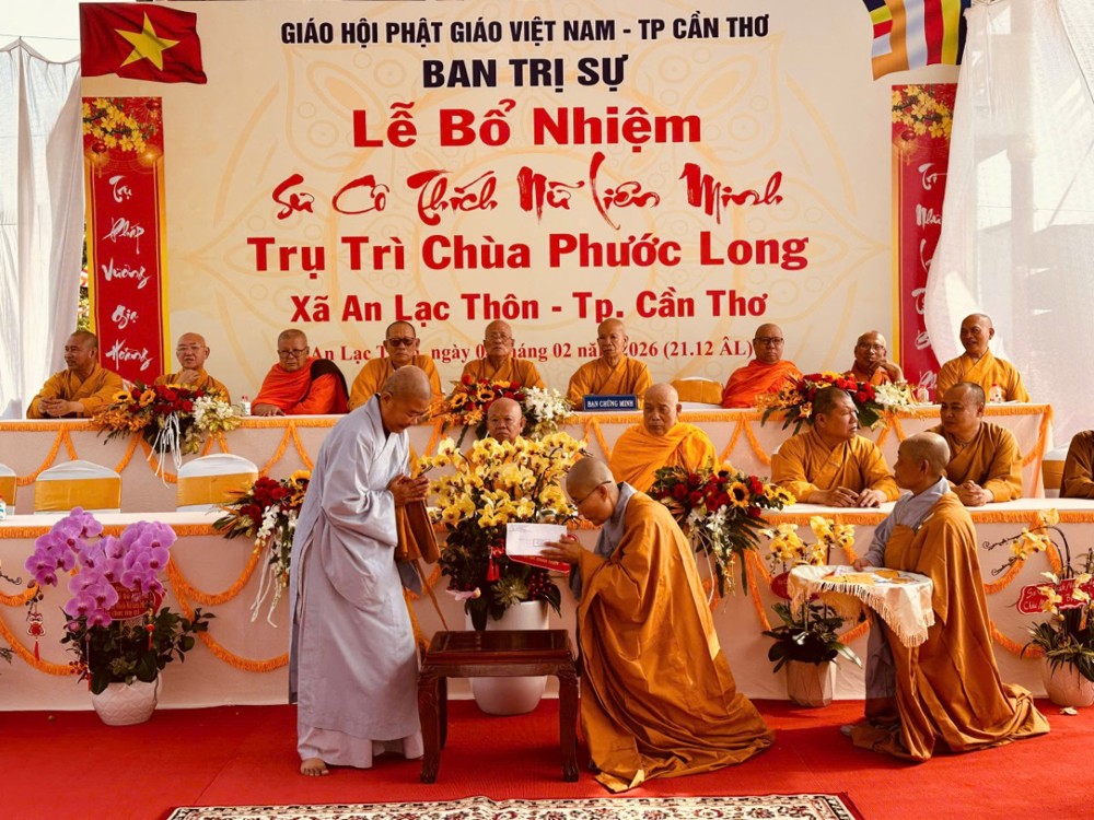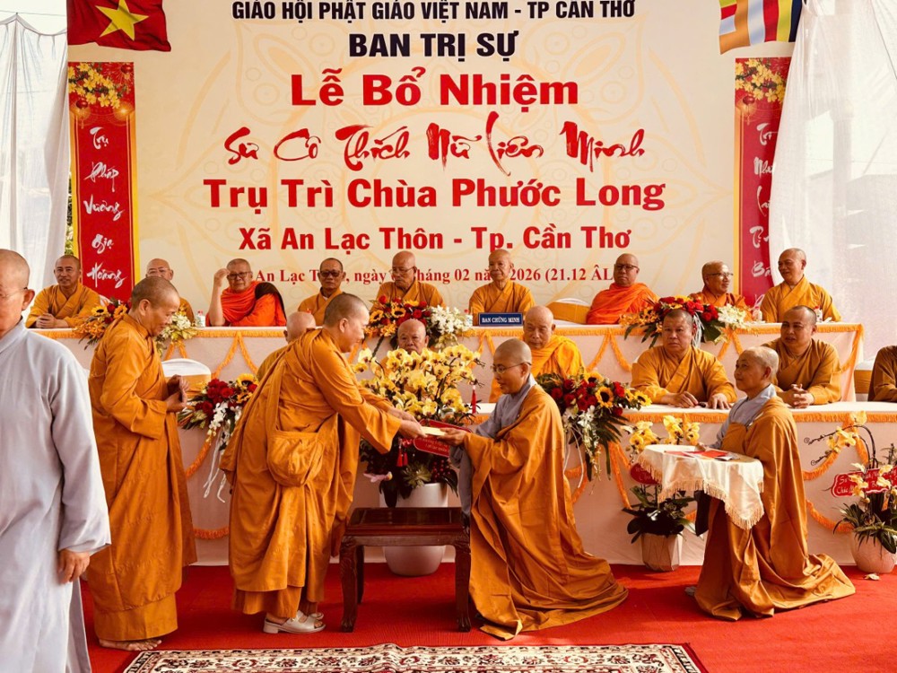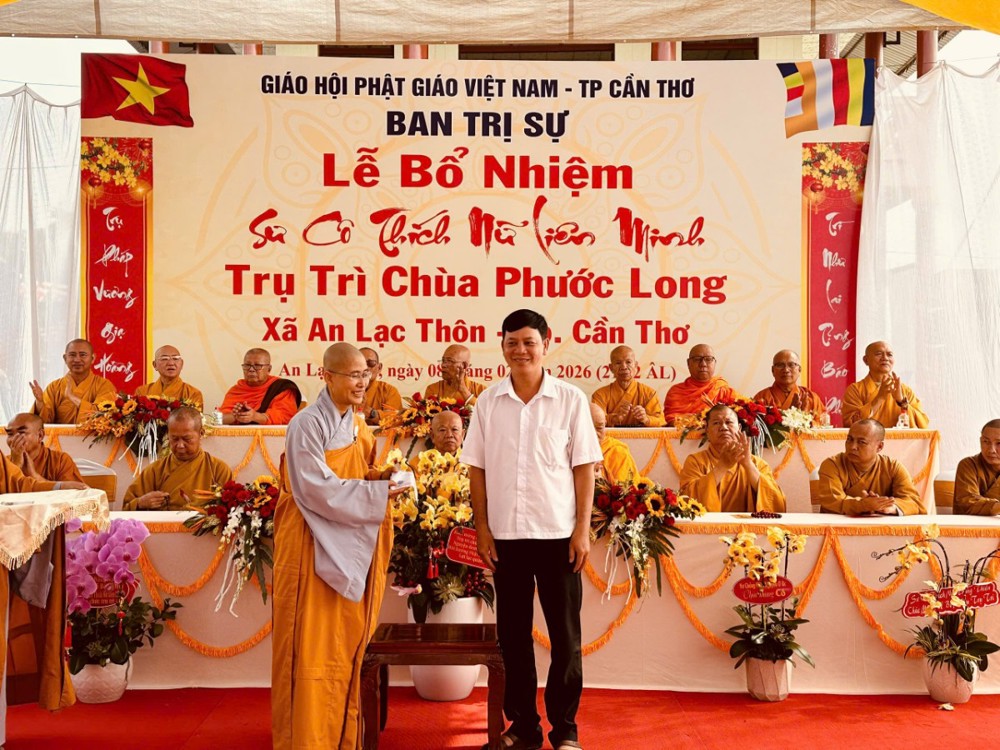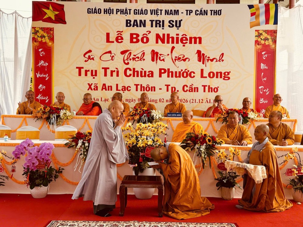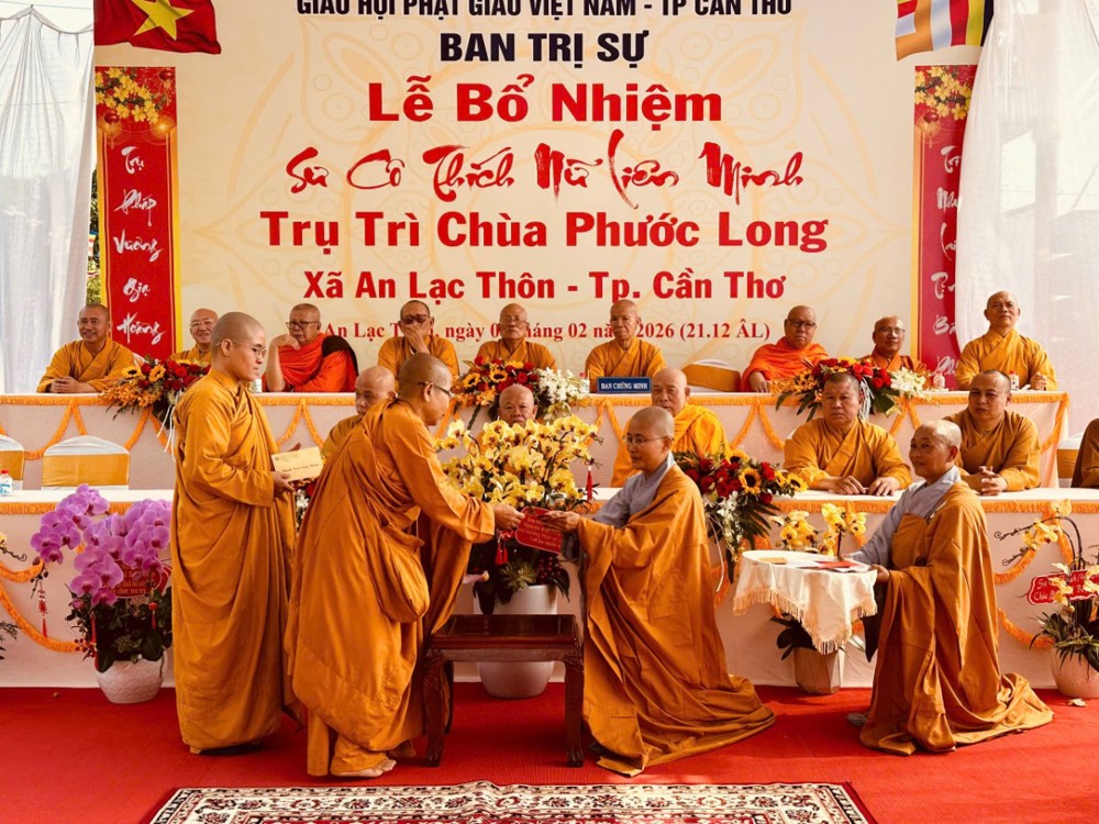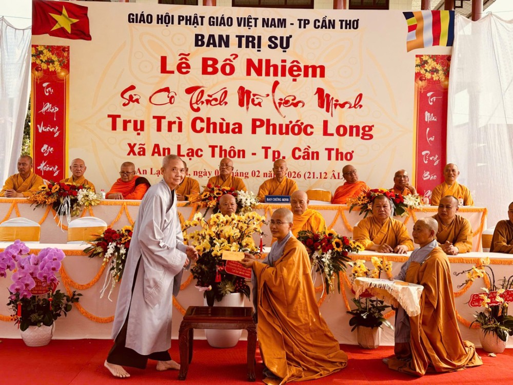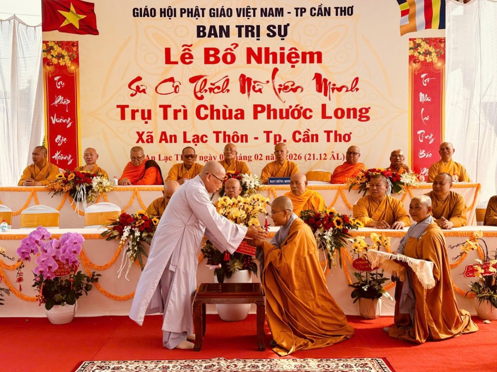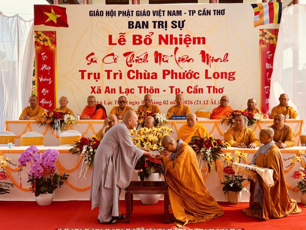 Sáng ngày 08/02/2026 (nhằm ngày 21/12 năm Ất Tỵ) Văn phòng BTS Phật giáo TP.Cần Thơ kết hợp cùng Sư cô Thích Nữ Liên Đắc và bổn đạo Phật tử trang nghiêm tổ chức lễ Công bố Quyết định Bổ nhiệm trụ trì chùa Phước Long thuộc xã An Lạc Thôn, TP.Cần Thơ.
