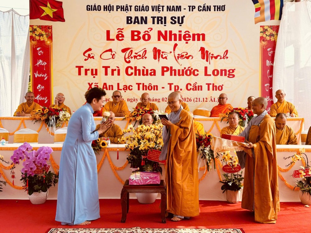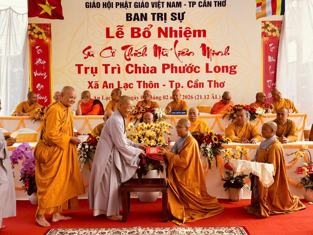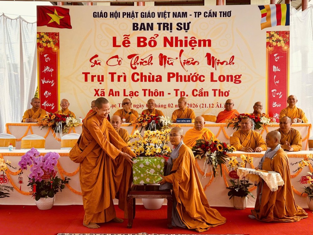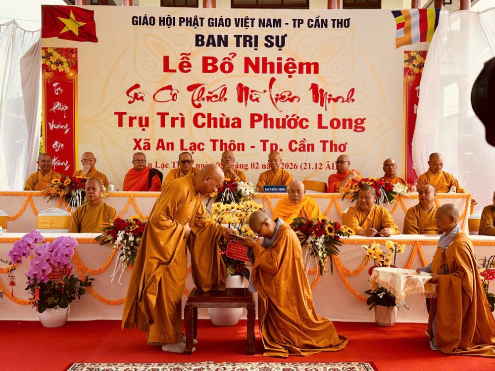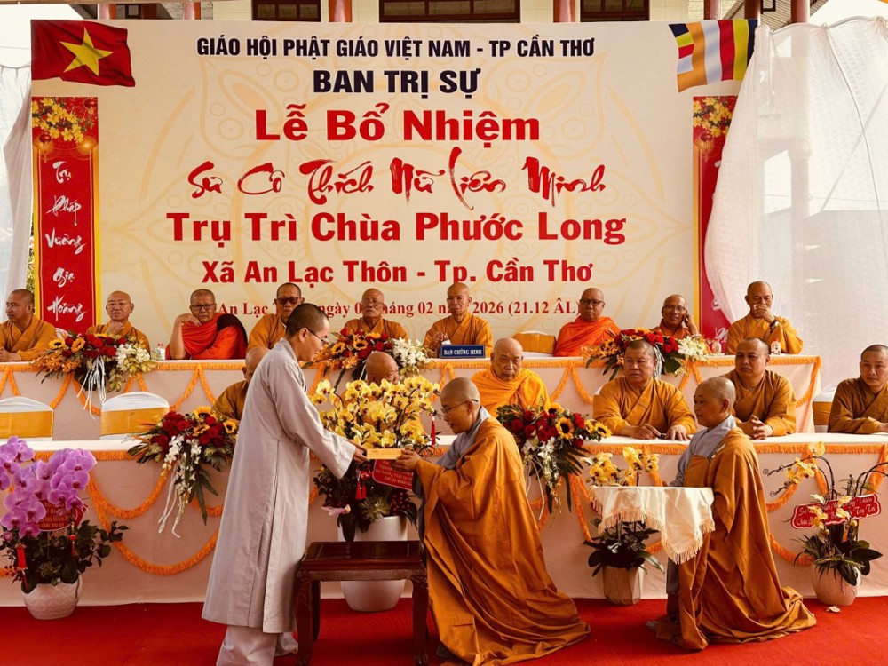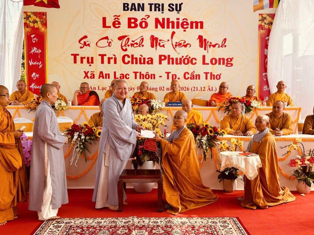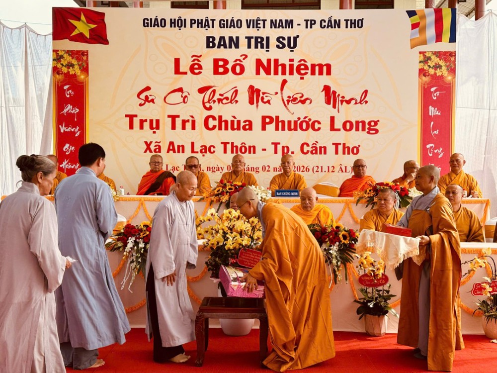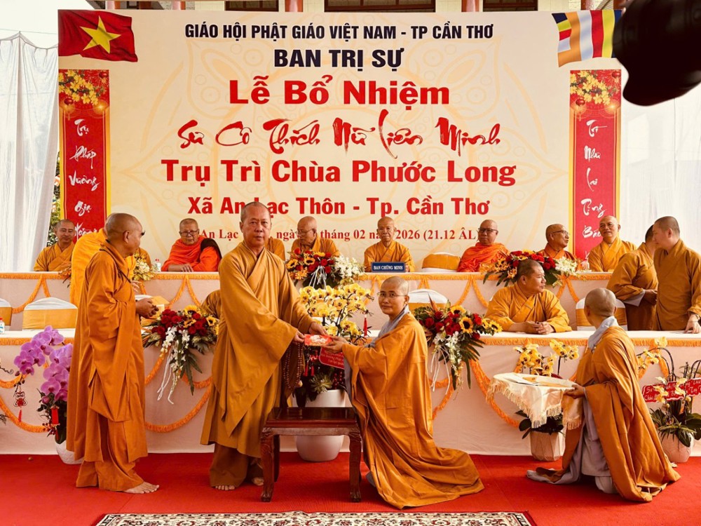 Sáng ngày 08/02/2026 (nhằm ngày 21/12 năm Ất Tỵ) Văn phòng BTS Phật giáo TP.Cần Thơ kết hợp cùng Sư cô Thích Nữ Liên Đắc và bổn đạo Phật tử trang nghiêm tổ chức lễ Công bố Quyết định Bổ nhiệm trụ trì chùa Phước Long thuộc xã An Lạc Thôn, TP.Cần Thơ.