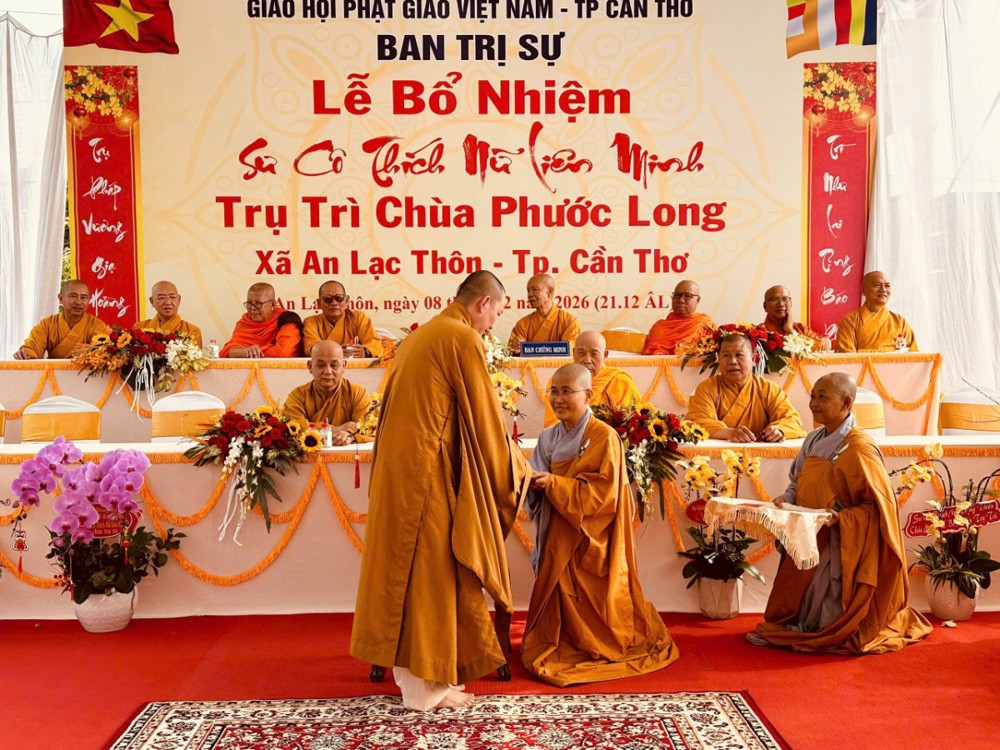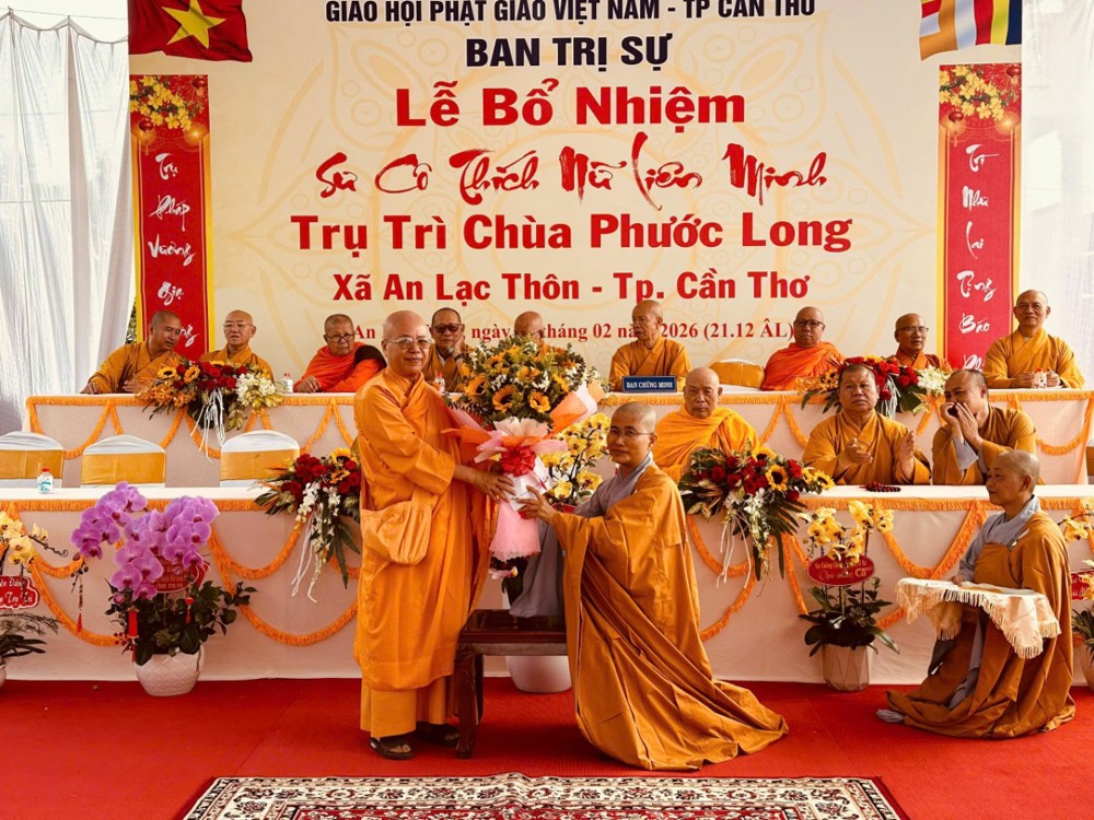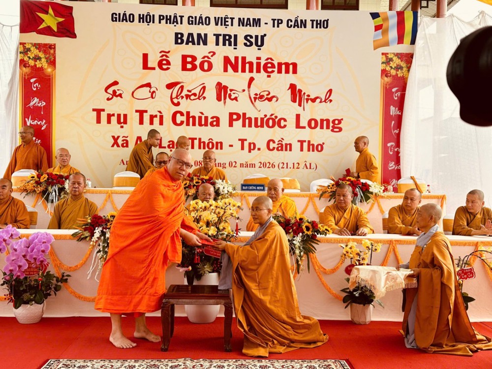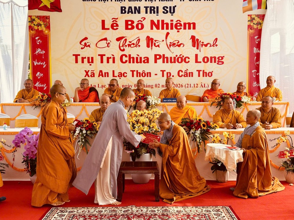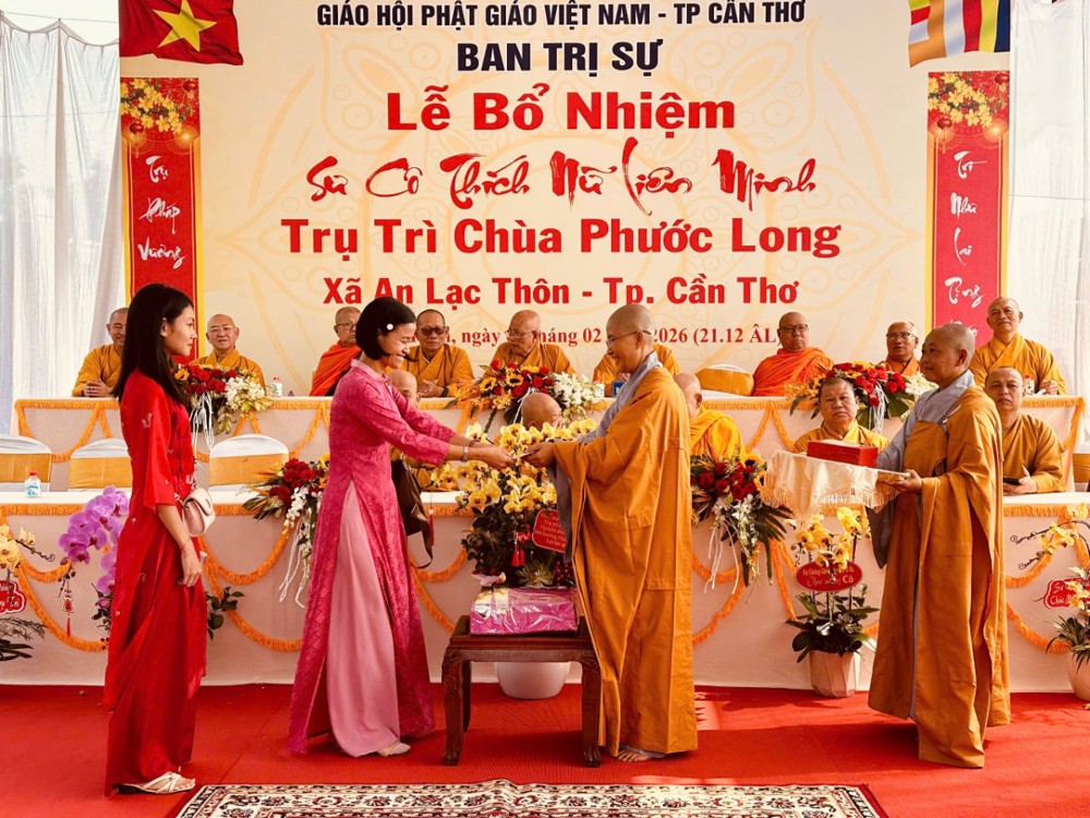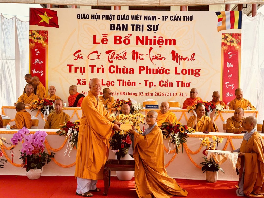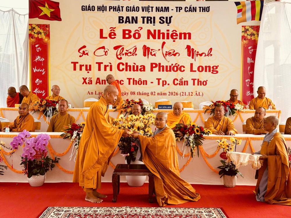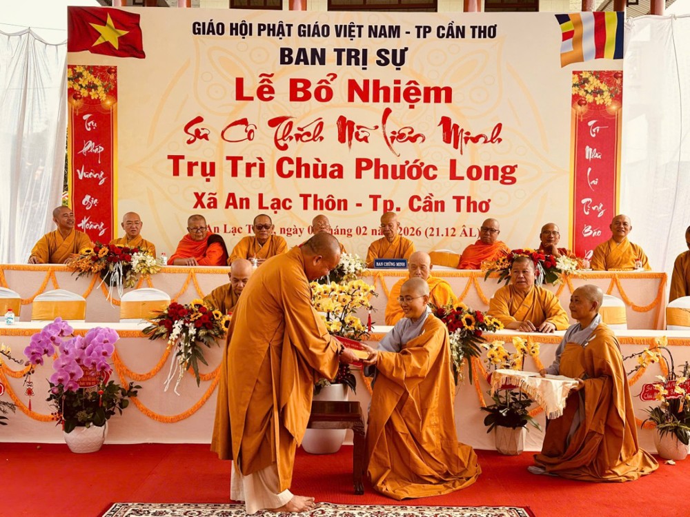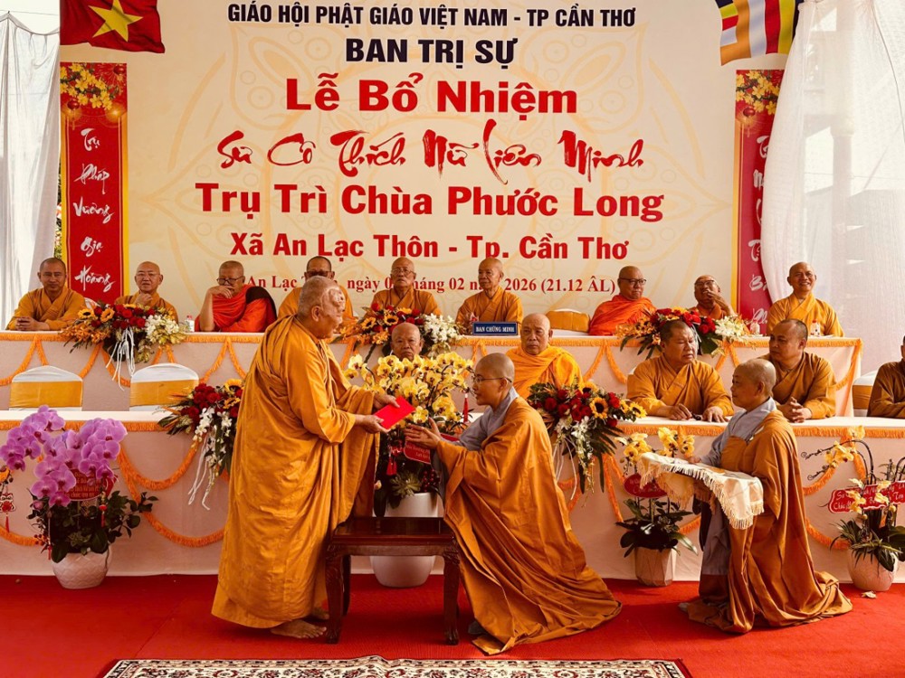 Sáng ngày 08/02/2026 (nhằm ngày 21/12 năm Ất Tỵ) Văn phòng BTS Phật giáo TP.Cần Thơ kết hợp cùng Sư cô Thích Nữ Liên Đắc và bổn đạo Phật tử trang nghiêm tổ chức lễ Công bố Quyết định Bổ nhiệm trụ trì chùa Phước Long thuộc xã An Lạc Thôn, TP.Cần Thơ.