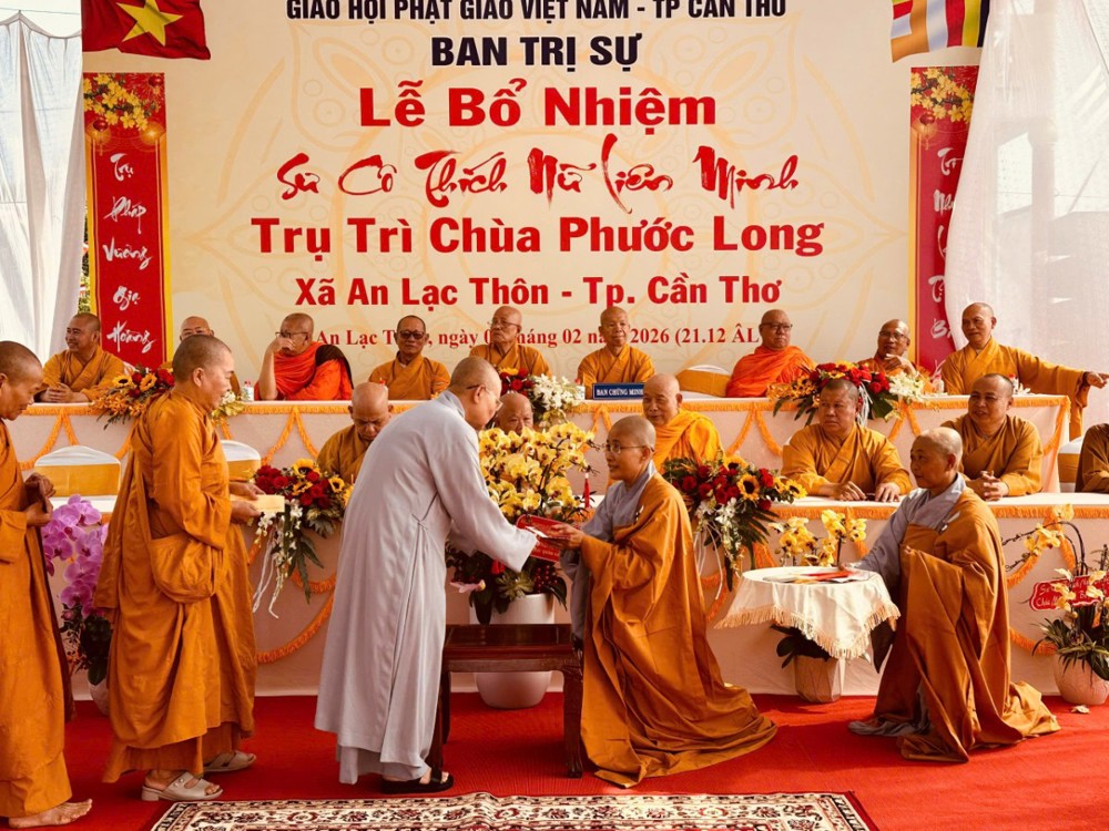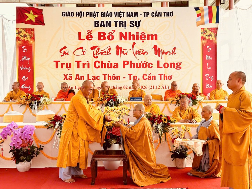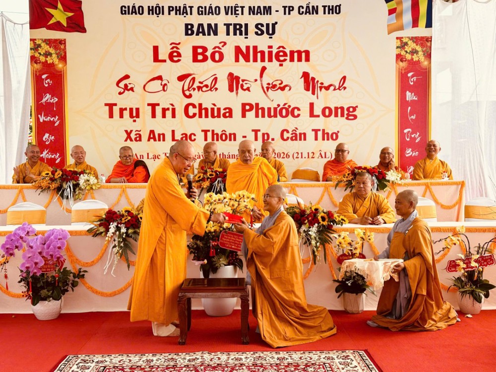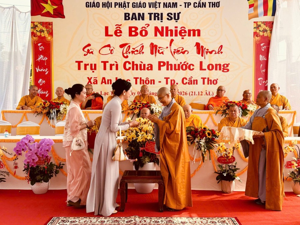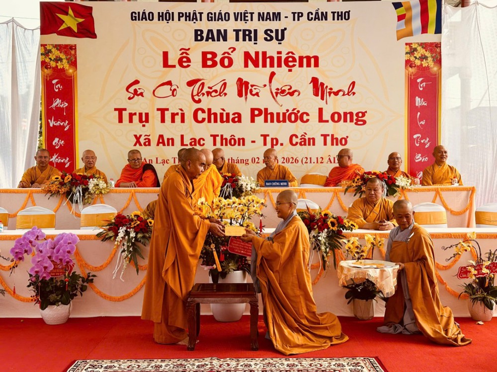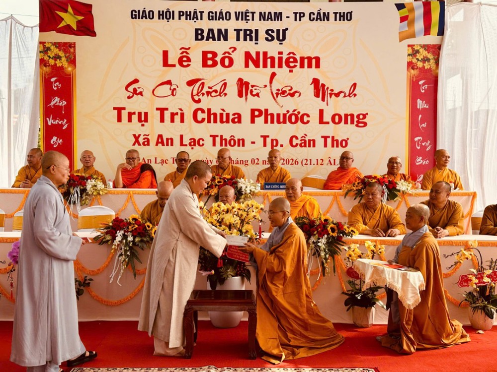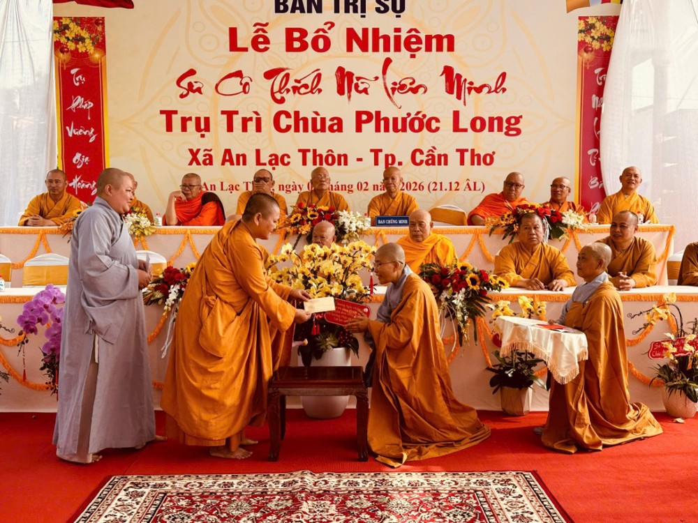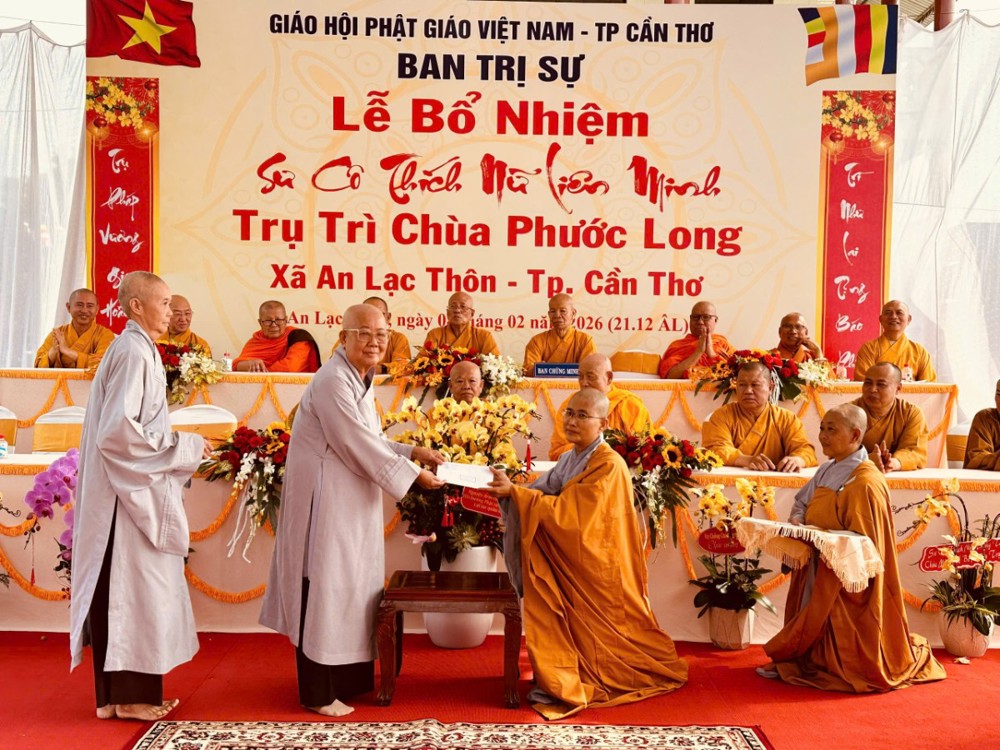 Sáng ngày 08/02/2026 (nhằm ngày 21/12 năm Ất Tỵ) Văn phòng BTS Phật giáo TP.Cần Thơ kết hợp cùng Sư cô Thích Nữ Liên Đắc và bổn đạo Phật tử trang nghiêm tổ chức lễ Công bố Quyết định Bổ nhiệm trụ trì chùa Phước Long thuộc xã An Lạc Thôn, TP.Cần Thơ.