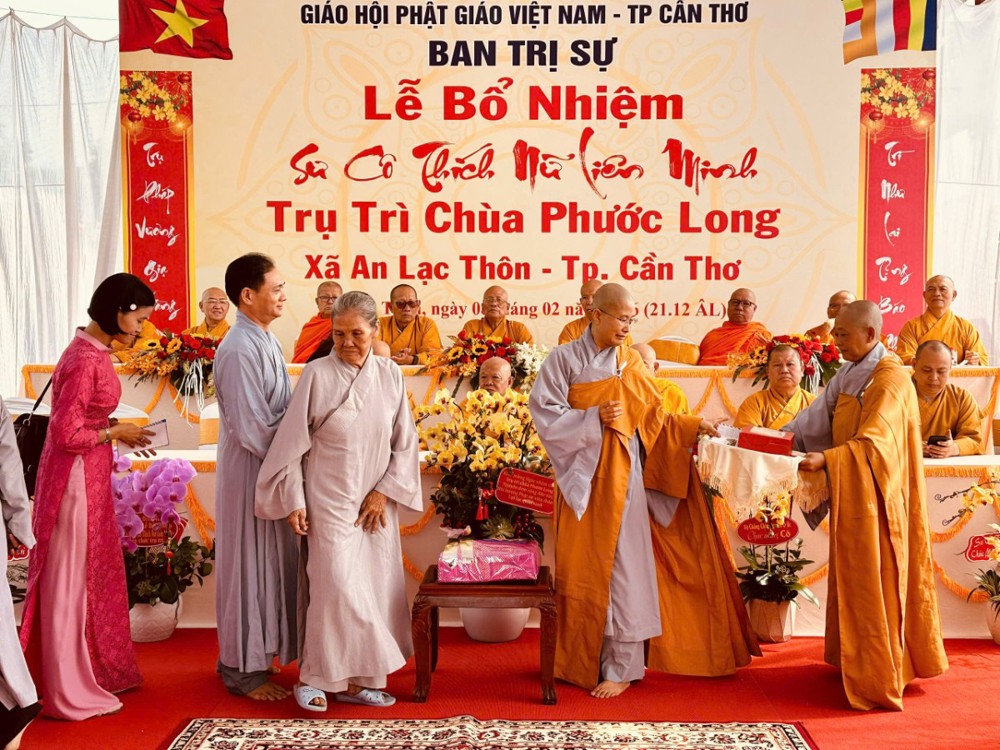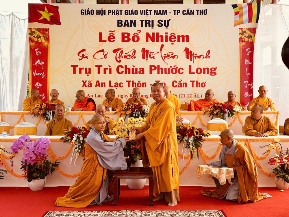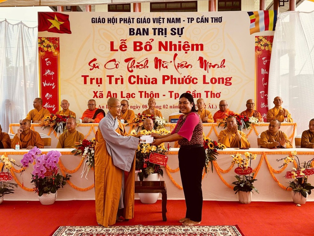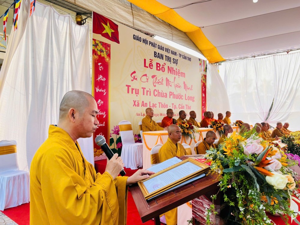 Thượng toạ Thích Thiện Nguyện thay mặt BTS công bố Quyết định. Theo đó, BTS GHPGVN TP.Cần Thơ Quyết định Bổ nhiệm Sư cô Thích Nữ Liên Minh, thế danh Lê Thị Tuyết Minh, sinh năm 1984 làm trụ trì chùa Phước Long ấp An Ninh, xã An Lạc Thôn, TP.Cần Thơ.