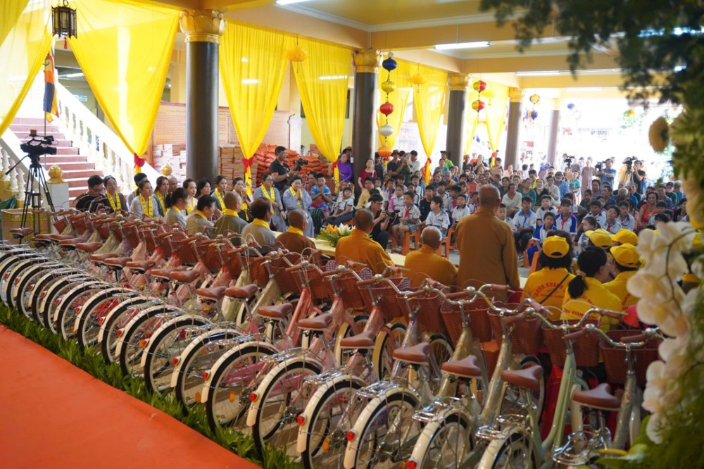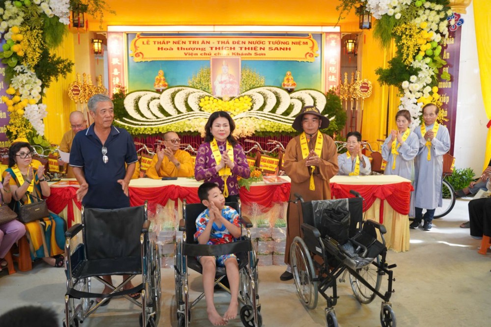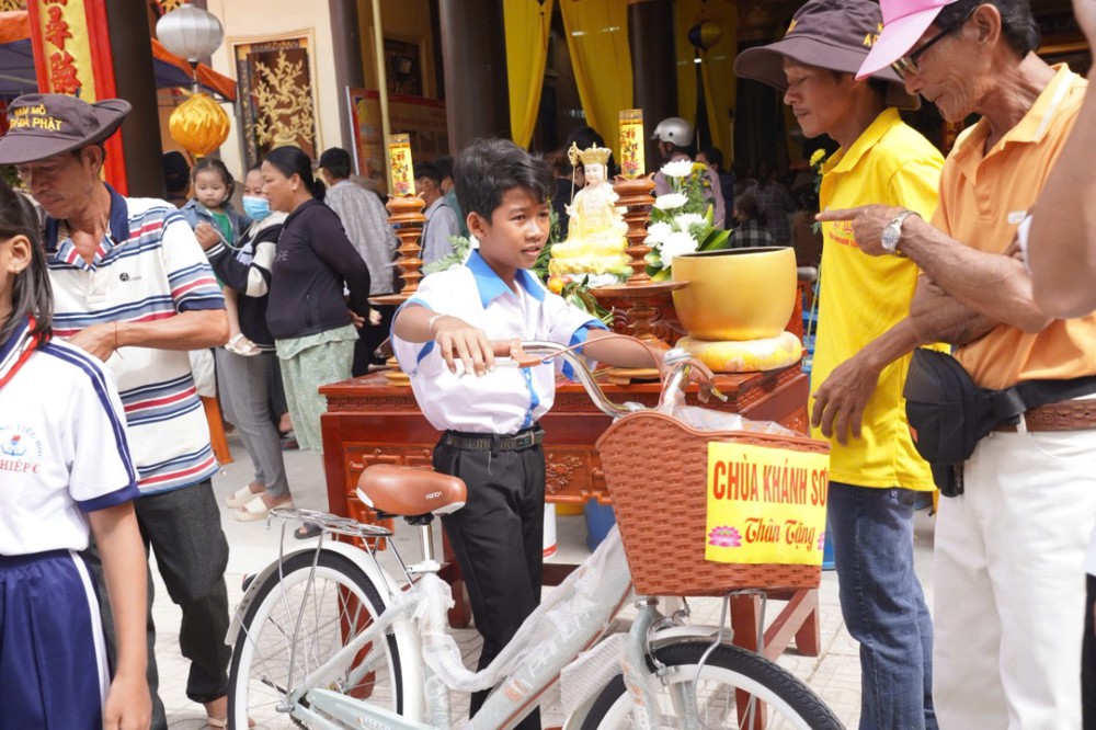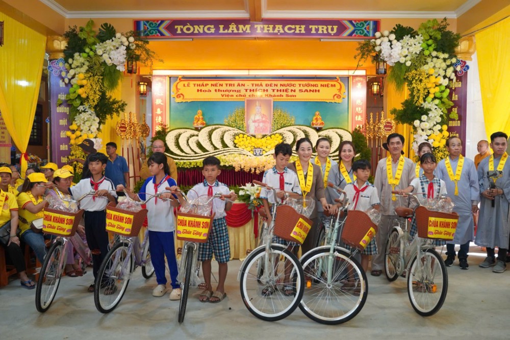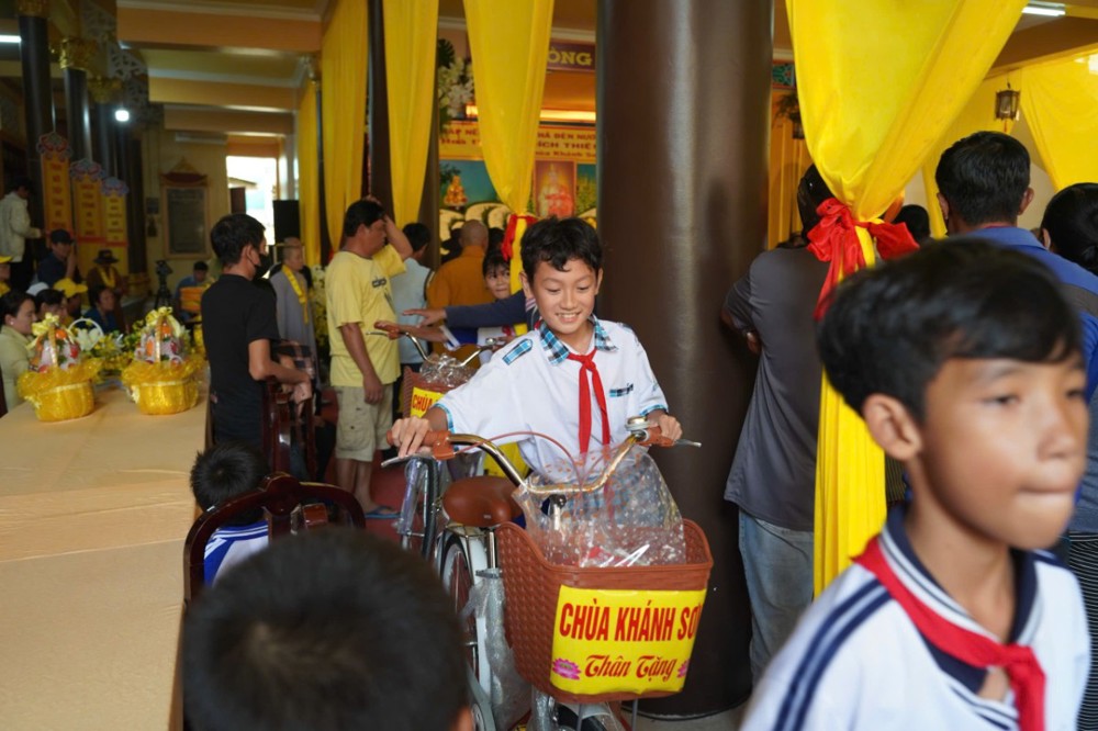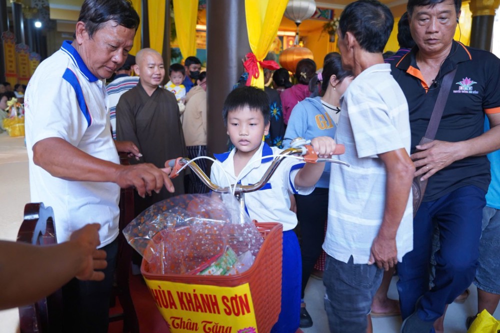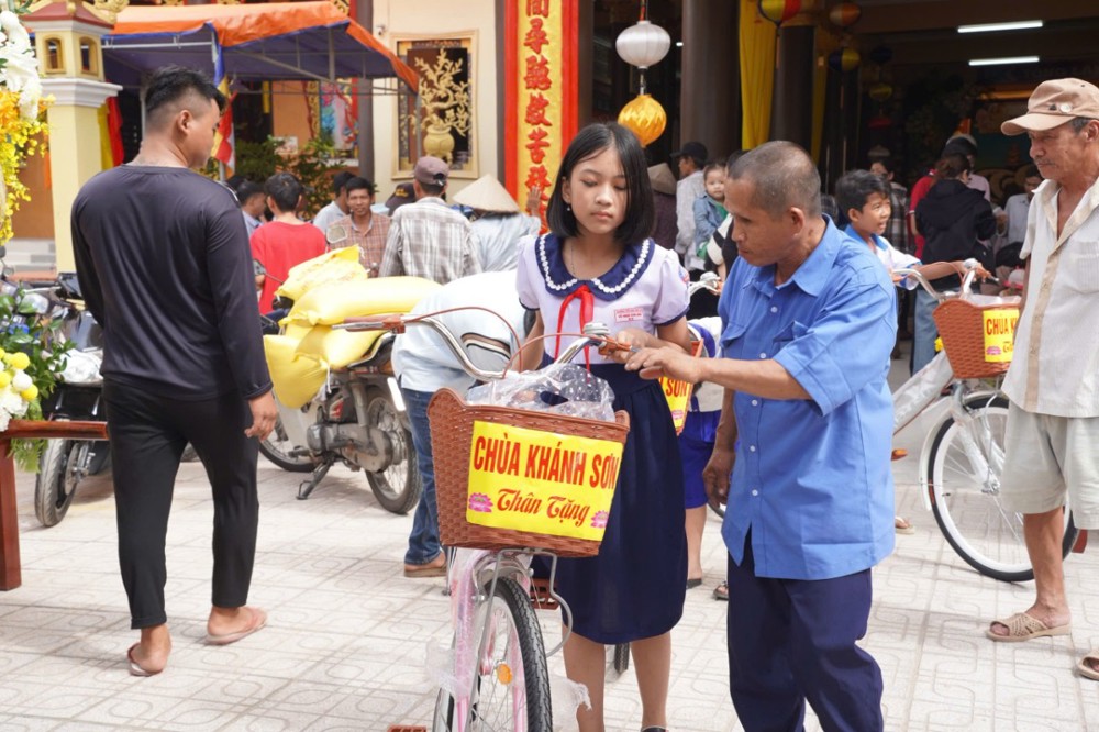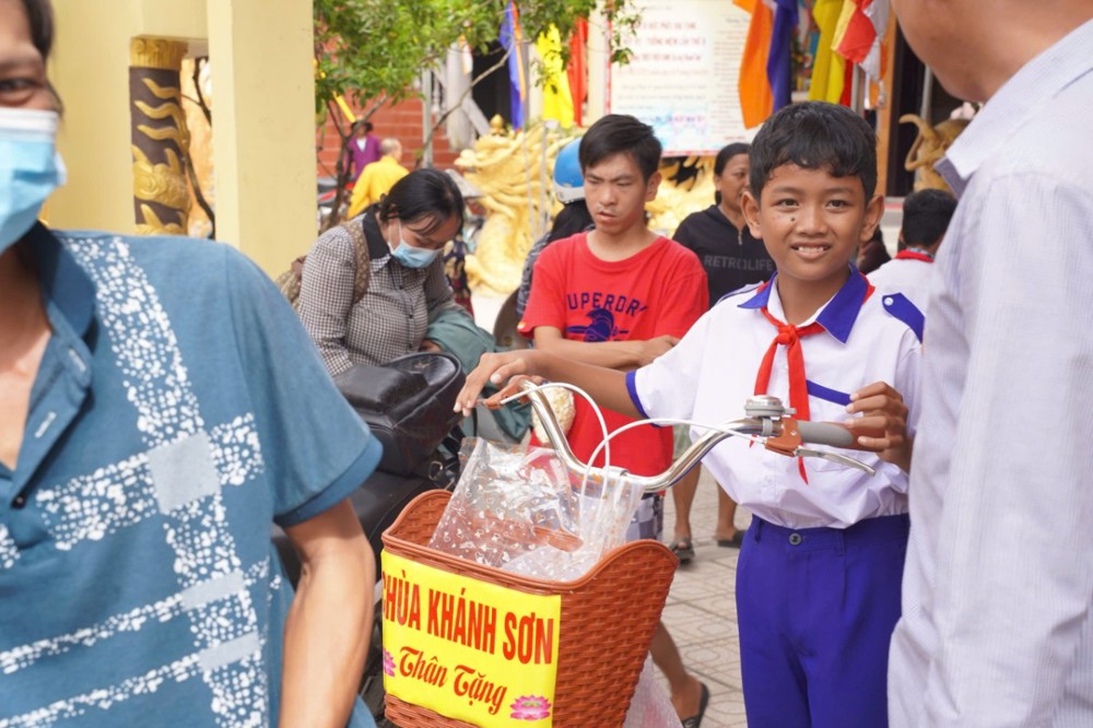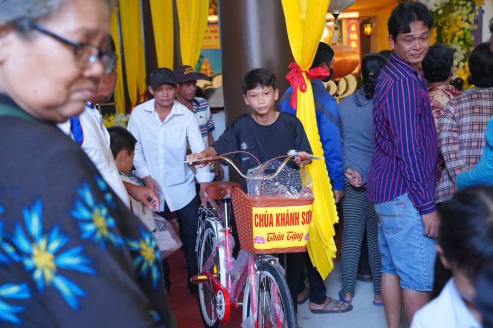 Tiếp nối truyền thống ấy, chùa Khánh Sơn trong dịp này đã vận động mạnh thường quân trong và ngoài nước trao tặng: 2 suất hỗ trợ cho bệnh nhân, mỗi suất trị giá 25 triệu đồng; 31 xe đạp và 300.000 đồng tiền mặt cho học sinh; 19 suất học bổng, mỗi suất 800.000 đồng; 300 phần quà cho bà con khó khăn, với tổng kinh phí hơn 250 triệu đồng.