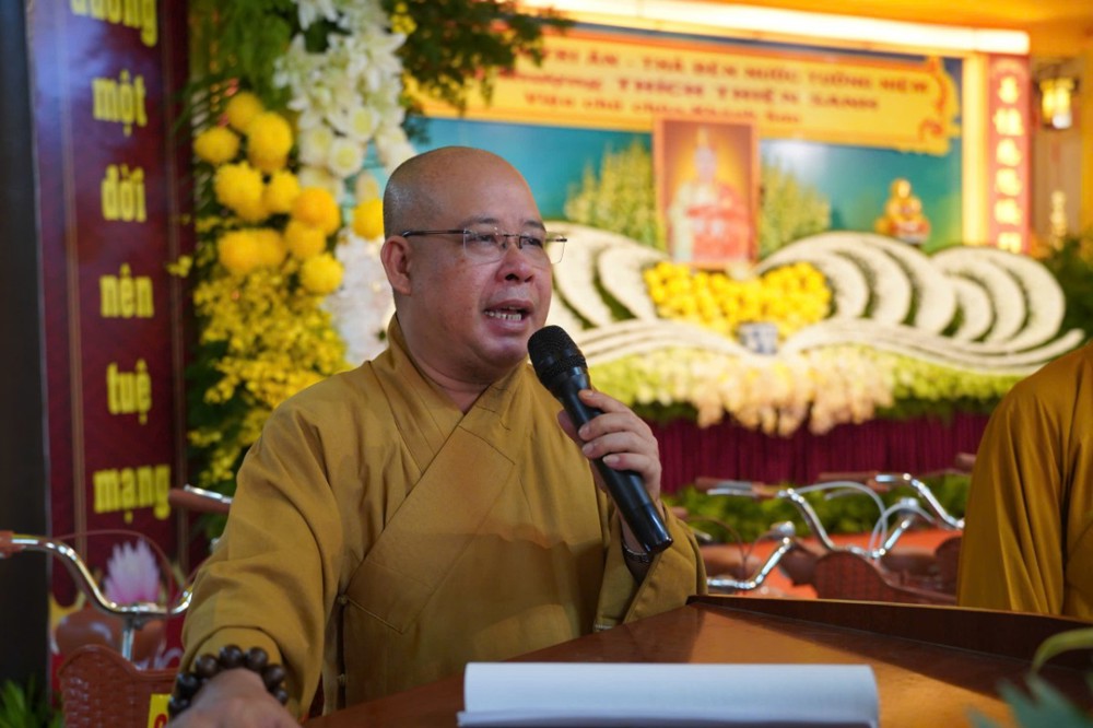 Phát biểu tại buổi lễ, TT. Thích Nhựt Quang đã tán thán công đức của TT. Thích Thiện Minh – người tiếp nối hạnh nguyện cao đẹp của Cố Hòa thượng Viện chủ trong công tác an sinh xã hội, chăm lo đời sống cộng đồng. Thượng tọa cũng gửi lời tri ân đến quý mạnh thường quân, nhà hảo tâm đã đồng hành cùng nhà chùa trong hành trình sẻ chia, góp phần giúp các gia đình khó khăn vơi bớt nhọc nhằn và tiếp thêm nghị lực học tập cho thế hệ trẻ.
