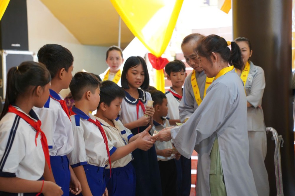 Buổi lễ được sự chứng minh và tham dự của HT. Thích Minh Thành – Chứng minh BTS GHPGVN TP. Cần Thơ; TT. Thích Nhựt Quang – Phó Trưởng ban BTS, Trưởng ban Giáo dục Phật giáo TP. Cần Thơ; TT. Thích Thiện Minh – Ủy viên Thường trực BTS, Phó ban Kiểm soát GHPGVN TP. Cần Thơ, Trụ trì chùa Khánh Sơn, Trưởng ban Tổ chức, cùng chư Tôn đức Tăng Ni, quý mạnh thường quân, nhà hảo tâm, các em học sinh và bà con đồng tham dự.