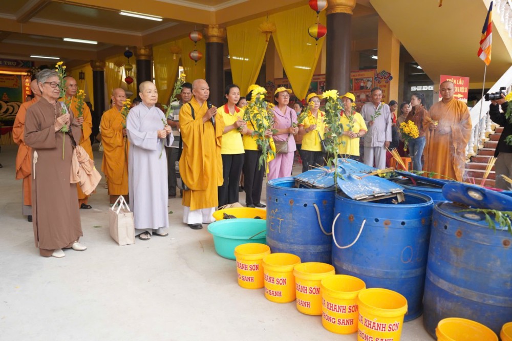 Cùng ngày, nhà chùa còn tổ chức lễ phóng sanh rùa, cá… nhằm bảo tồn nguồn tài nguyên thủy sản, đồng thời hồi hướng công đức đến đồng bào miền Trung và cả nước đang chịu ảnh hưởng bởi thiên tai bão lũ, nguyện cầu cho quốc thái dân an, mưa thuận gió hòa, mọi nhà ấm no hạnh phúc.
