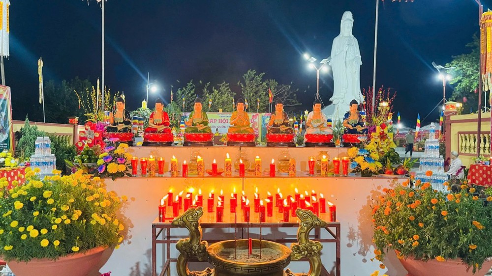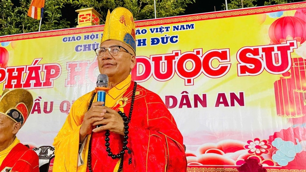 Cụ bà Châu Thị Hoàng đại diện đạo tràng Phật tử dâng lời tác bạch, thể hiện niềm tin vững chắc với Tam bảo, mong muốn sang năm mới mọi người luôn được bình an khoẻ mạnh, mọi việc hạnh thông, cát tường như ý. Cầu nguyện chư Phật Dược Sư gia hộ quốc gia hưng thịnh, mọi người đều có đời sống an vui hạnh phúc.