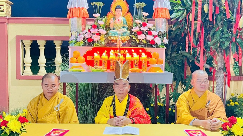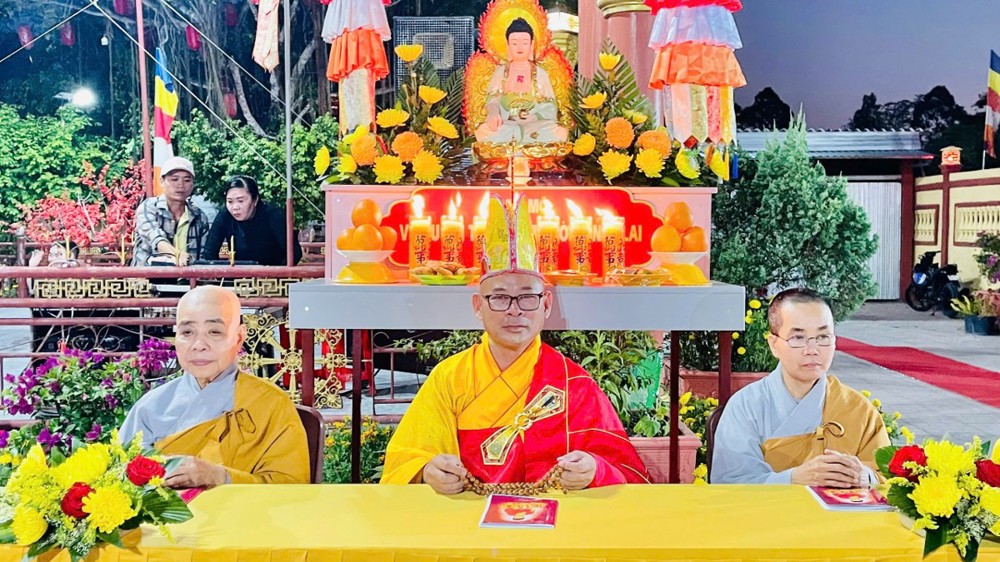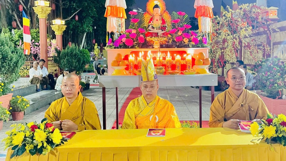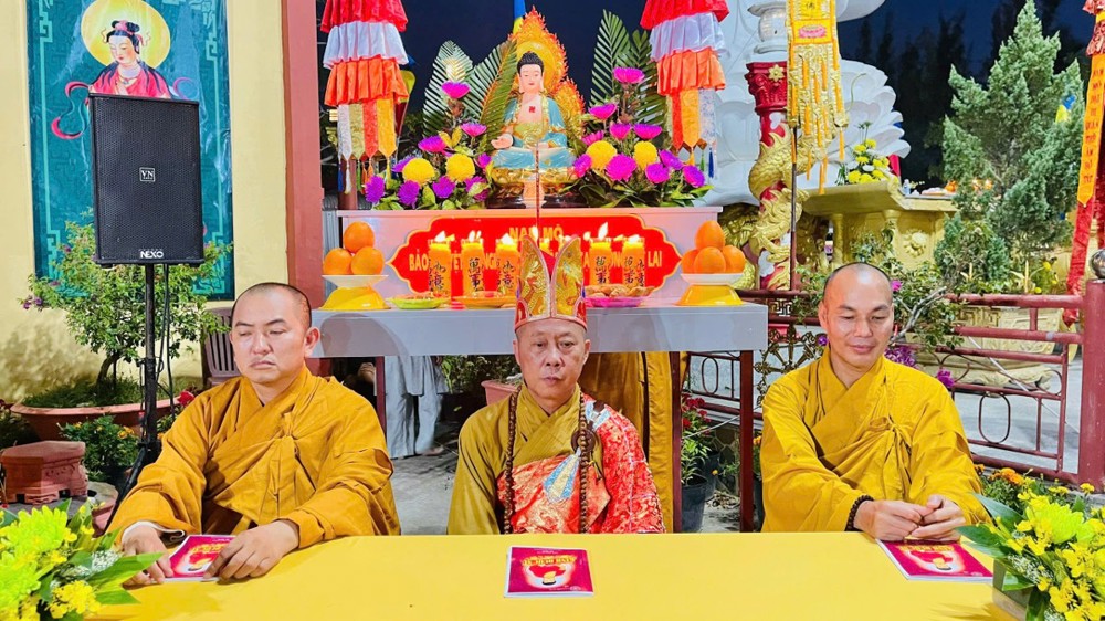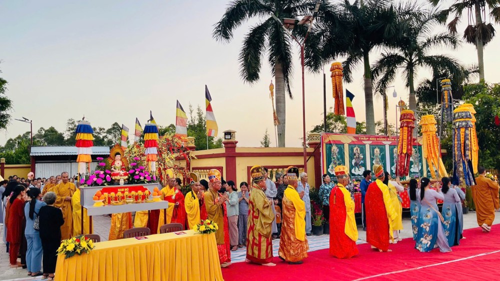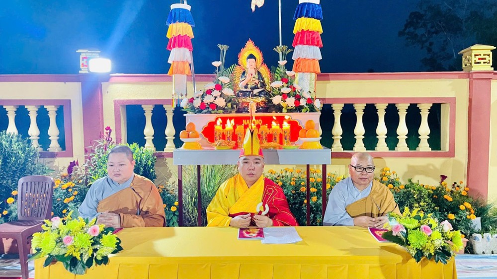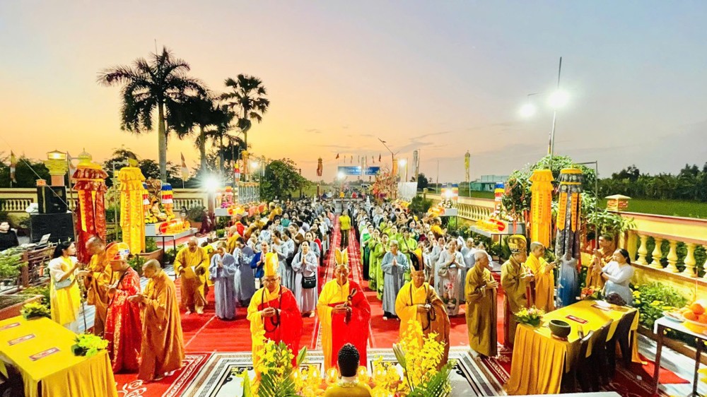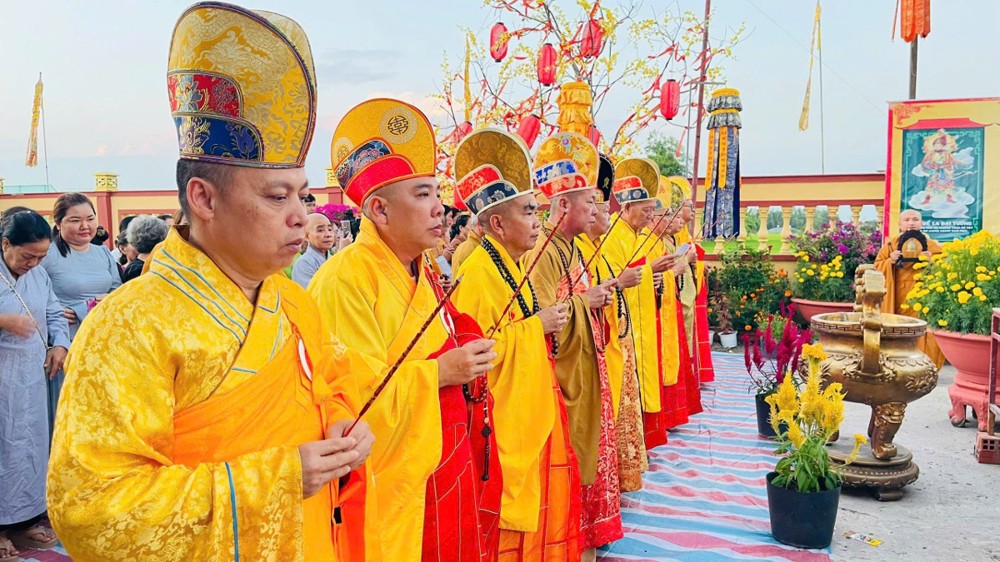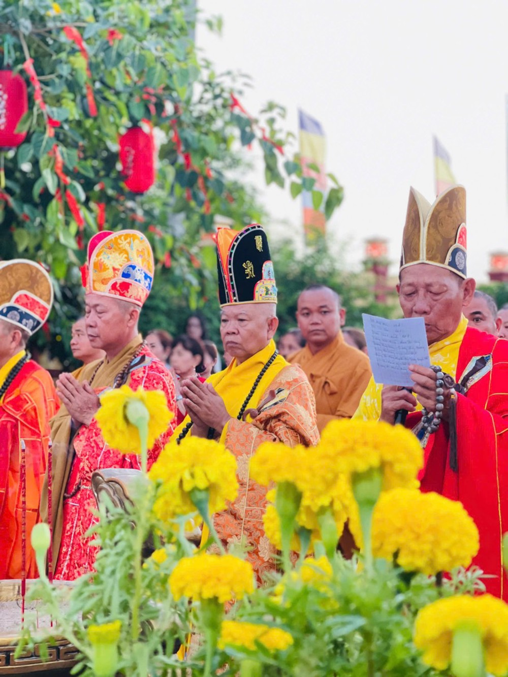 Buổi lễ diễn ra trang nghiêm theo nghi thức Phật giáo. Chư tôn đức Tăng Ni quang lâm Pháp hội niệm hương bạch Phật, đảnh lễ cầu nguyện "phong điều vũ thuận, quốc thái dân an".