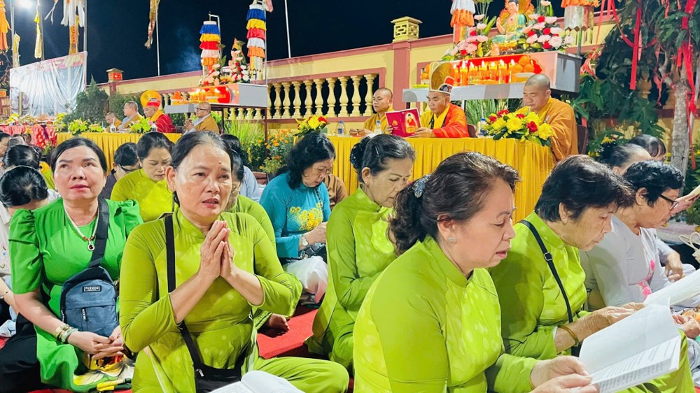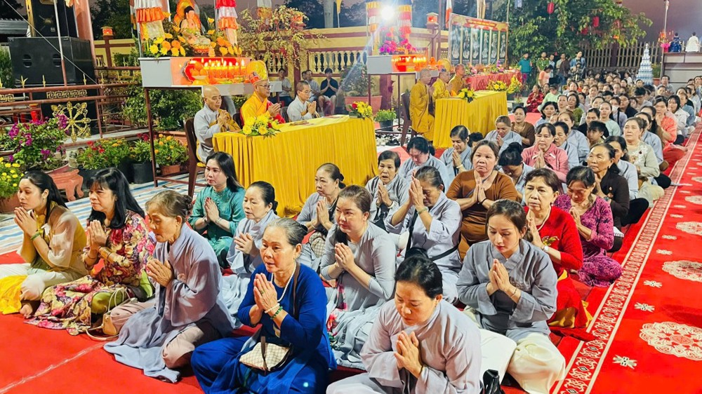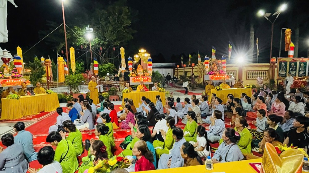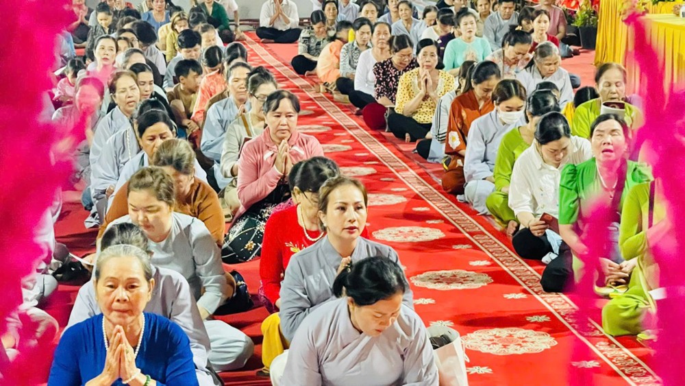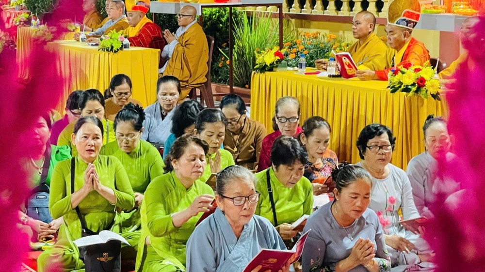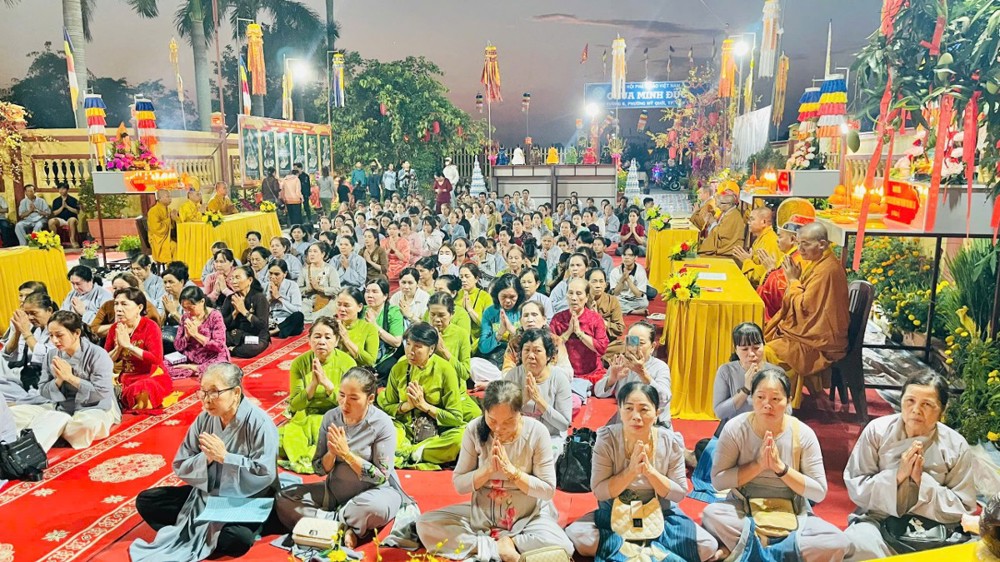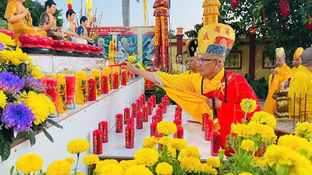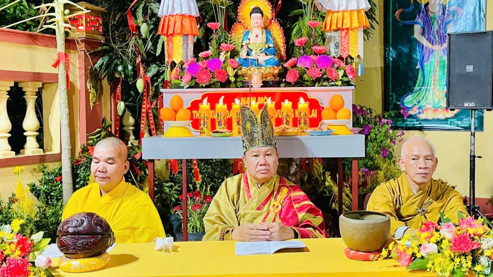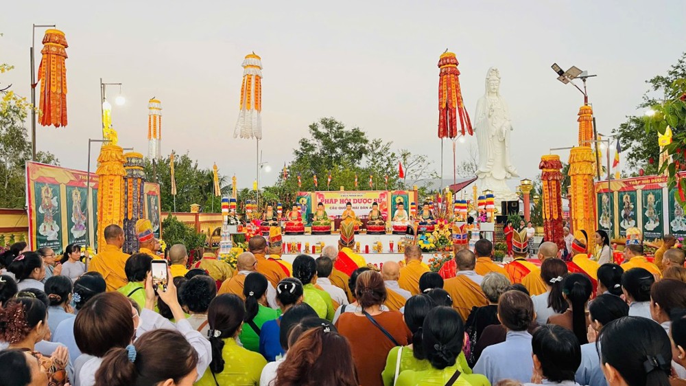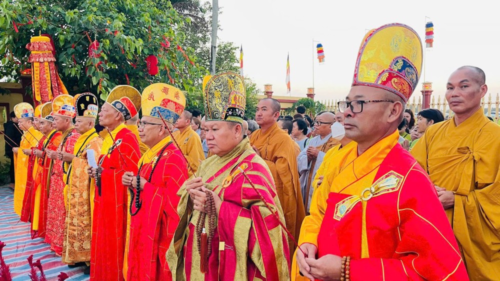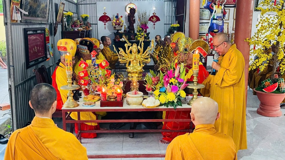 Buổi lễ diễn ra trang nghiêm theo nghi thức Phật giáo. Chư tôn đức Tăng Ni quang lâm Pháp hội niệm hương bạch Phật, đảnh lễ cầu nguyện "phong điều vũ thuận, quốc thái dân an".