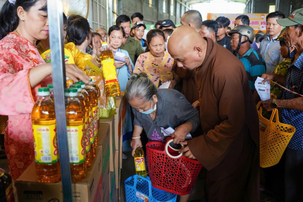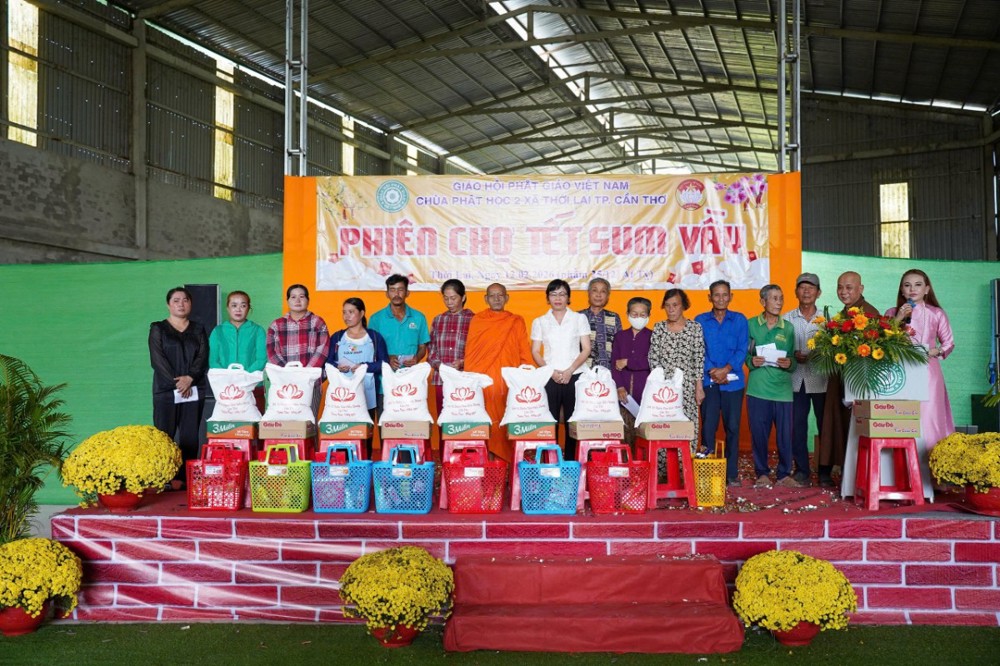 PSO – Trong không khí ấm áp những ngày cuối năm, ngày 12-02-2026 (nhằm 25 tháng Chạp năm Ất Tỵ), Thượng tọa Thích Minh Thông – Phó Ban Trị sự kiêm Trưởng ban Từ thiện Xã hội Giáo hội Phật giáo Việt Nam TP. Cần Thơ, Trụ trì chùa Phật Học 2 (xã Thới Lai), đã tổ chức chương trình “Phiên chợ Tết Sum Vầy”, trao tặng 550 phần quà đến bà con có hoàn cảnh khó khăn, góp phần mang đến một mùa xuân an vui, nghĩa tình.