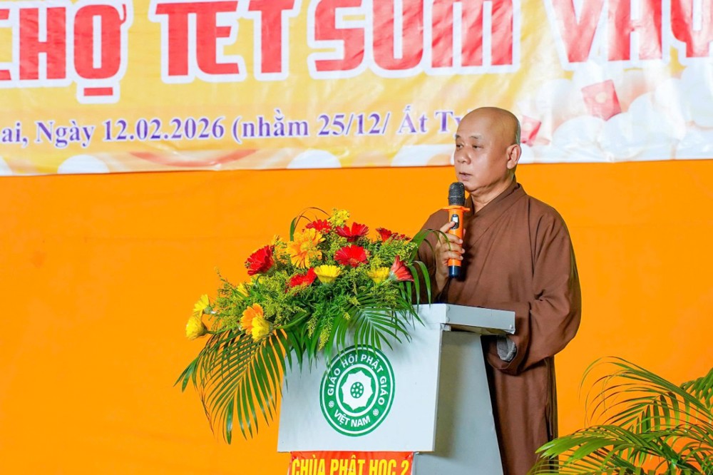 Phát biểu khai mạc, Thượng tọa Thích Minh Thông nhấn mạnh truyền thống “tương thân tương ái” của dân tộc Việt Nam, đồng thời khẳng định tinh thần nhập thế của Phật giáo luôn gắn liền với việc phụng sự chúng sanh. Hằng năm, chùa Phật Học 2 đều vận động Phật tử và quý mạnh thường quân chung tay hỗ trợ bà con có hoàn cảnh khó khăn, đặc biệt tại các vùng sâu, vùng xa, với mong muốn mọi người đều được đón Tết trong không khí đầm ấm, an vui.