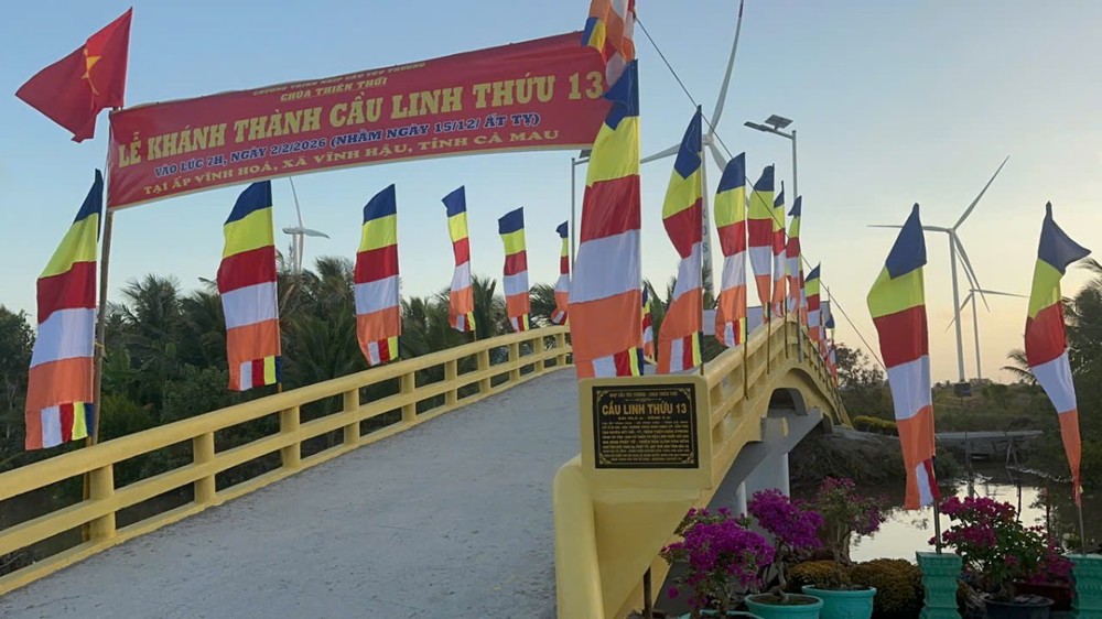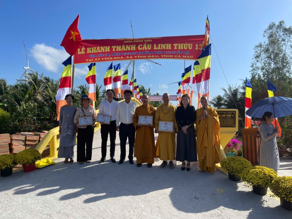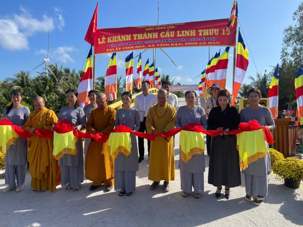 Ngày 02/02/2026 "Nhịp cầu yêu thương" chùa Thiên Thới kết hợp nhà tài trợ và chính quyền địa phương cắt băng khánh thành cầu Linh Thứu 13 tại ấp Vĩnh Hoà, xã Vĩnh Hậu, tỉnh Cà Mau. Buổi lễ có sự tham dự của Thượng toạ Thích Thiện Xuân - Trụ trì Tu viện Linh Thứu (TP.HCM); Ni sư Thích Nữ Liên Hoà - Trụ trì chùa Hải Triều Âm (Cà Mau) cùng đại diện chính quyền địa phương, nhà tài trợ và bà con quanh vùng.