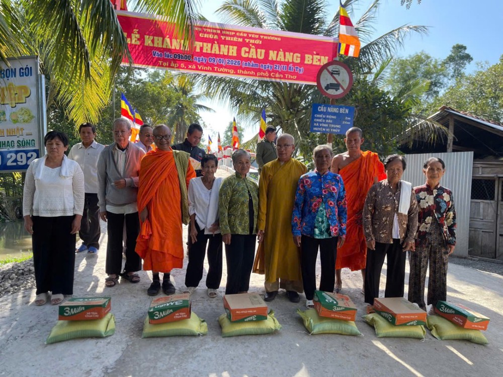 PSO - Ngày 09 - 10/1/2026 (nhằm ngày 21 - 22/11 năm Ất Tỵ), chùa Thiên Thới (xã Thới An Hội) tổ chức cắt băng khánh thành, đưa vào sử dụng 3 cầu bê tông nông thôn và tặng quà cho bà con với tổng giá trị trên 900 triệu đồng.