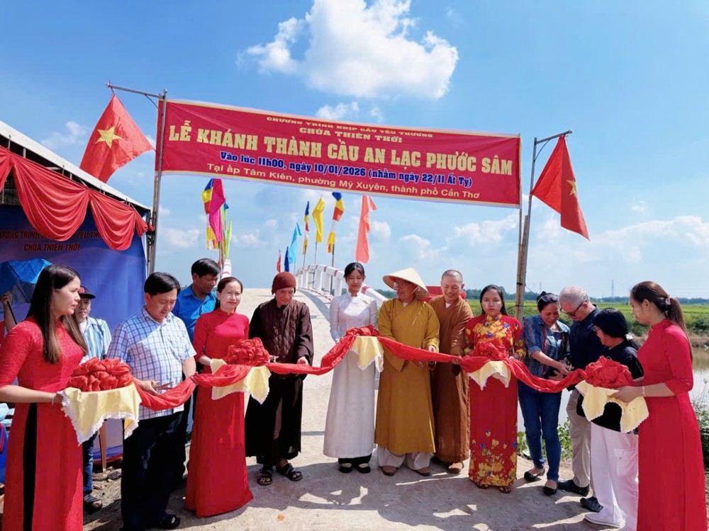 Cầu An Lạc Phước Sâm tại ấp Tân Kiên, phường Mỹ Xuyên, TP.Cần Thơ. Cầu dài 24 mét, rộng 2,5 mét với kết cấu kiên cố bằng bê tông cốt sắt, tải trọng trên 2 tấn. Gia đình Phật tử Phước Sâm (Nguyễn Đầy Đức) ở TP.HCM tài trợ kinh phí vật tư (120 triệu đồng). Tổng trị giá của cầu là 240 triệu đồng.