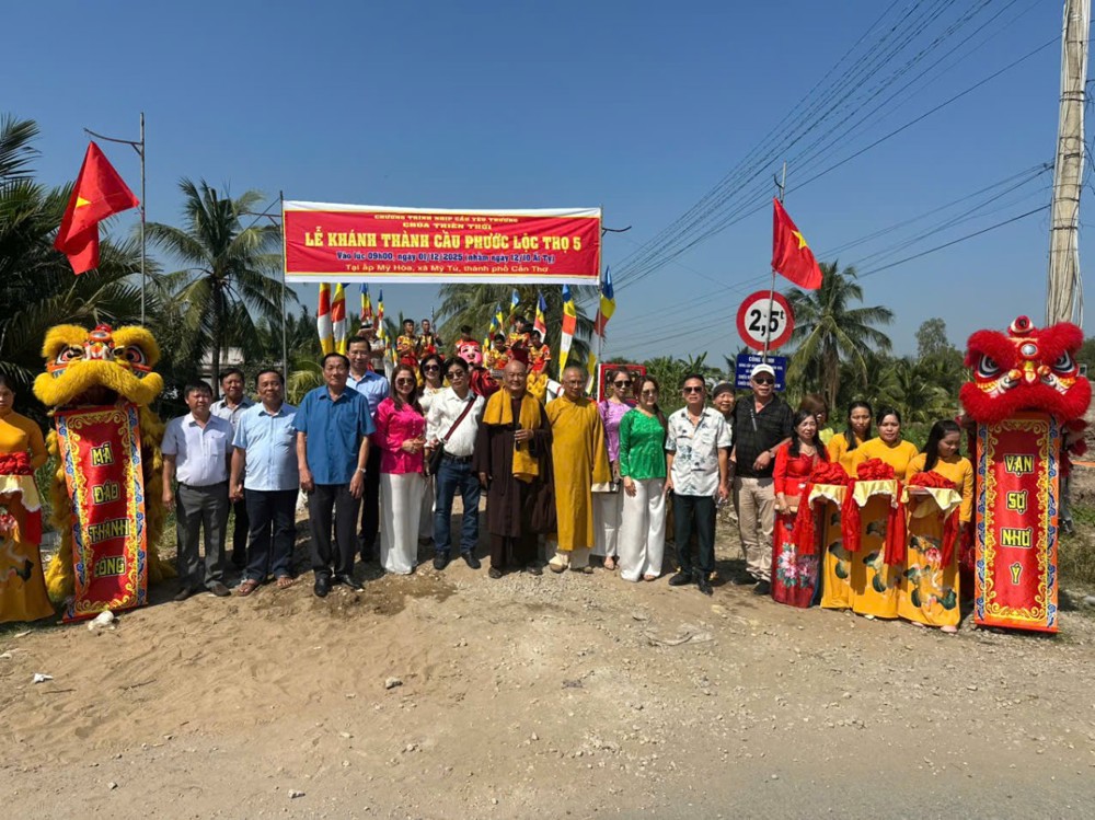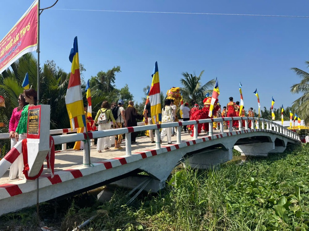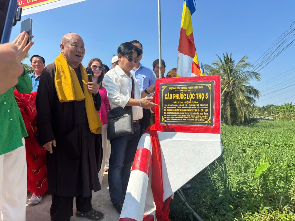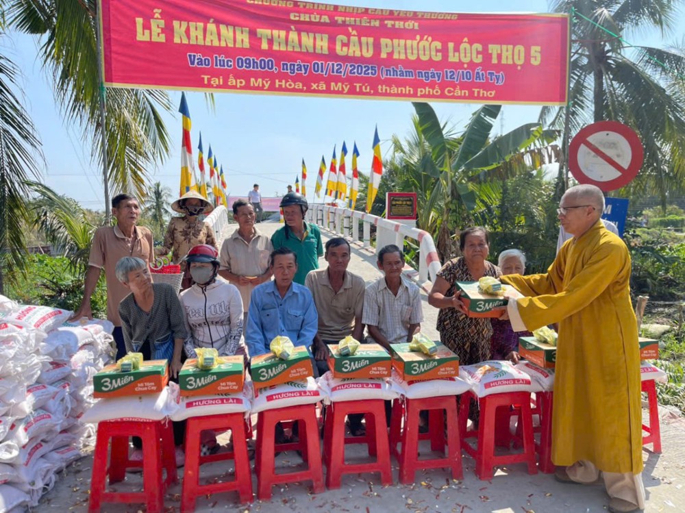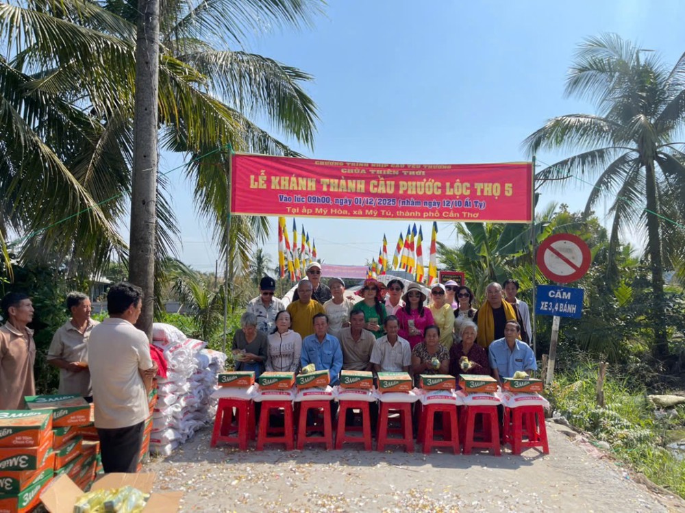 PSO – Sáng ngày 01/12/2025 (nhằm ngày 12/10 năm Ất Tỵ) “Nhịp cầu yêu thương” chùa Thiên Thới kết hợp chính quyền và nhà tài trợ tổ chức khánh thành cầu bê tông nông thôn; đồng thời tặng quà cho bà con với tổng trị giá hơn 500 triệu đồng.