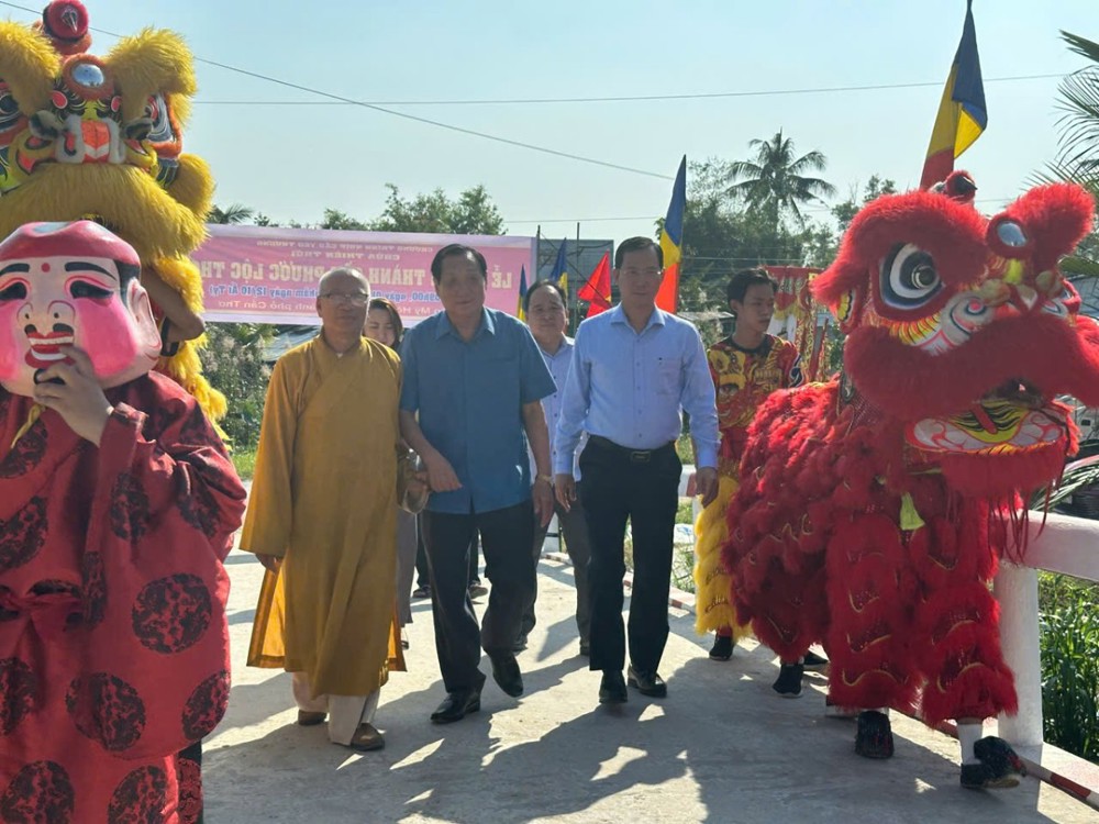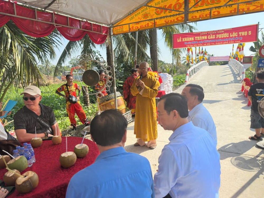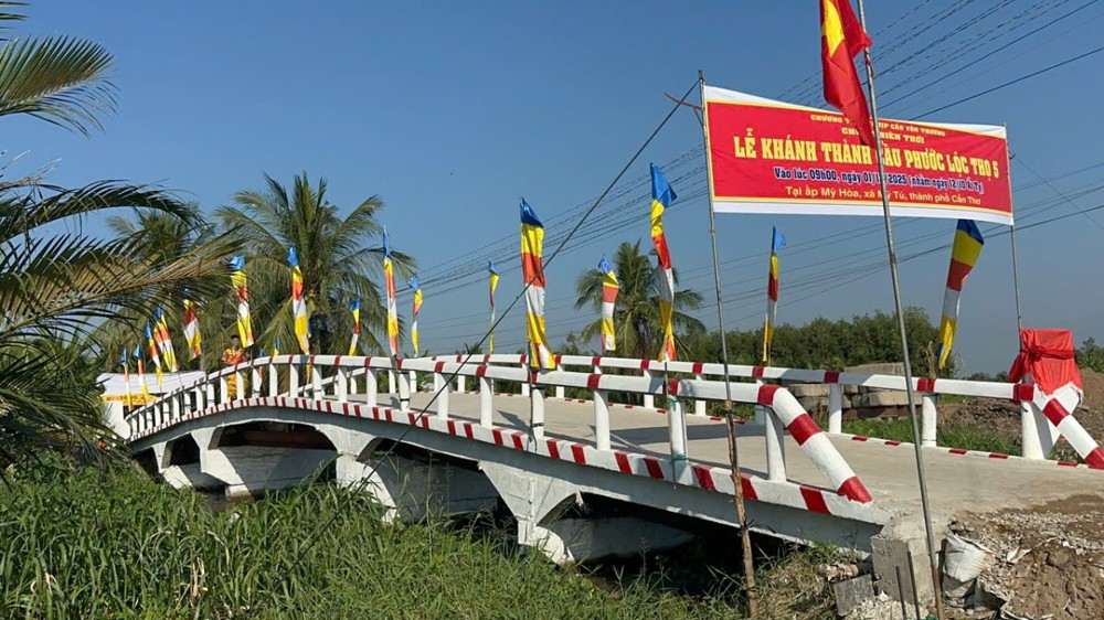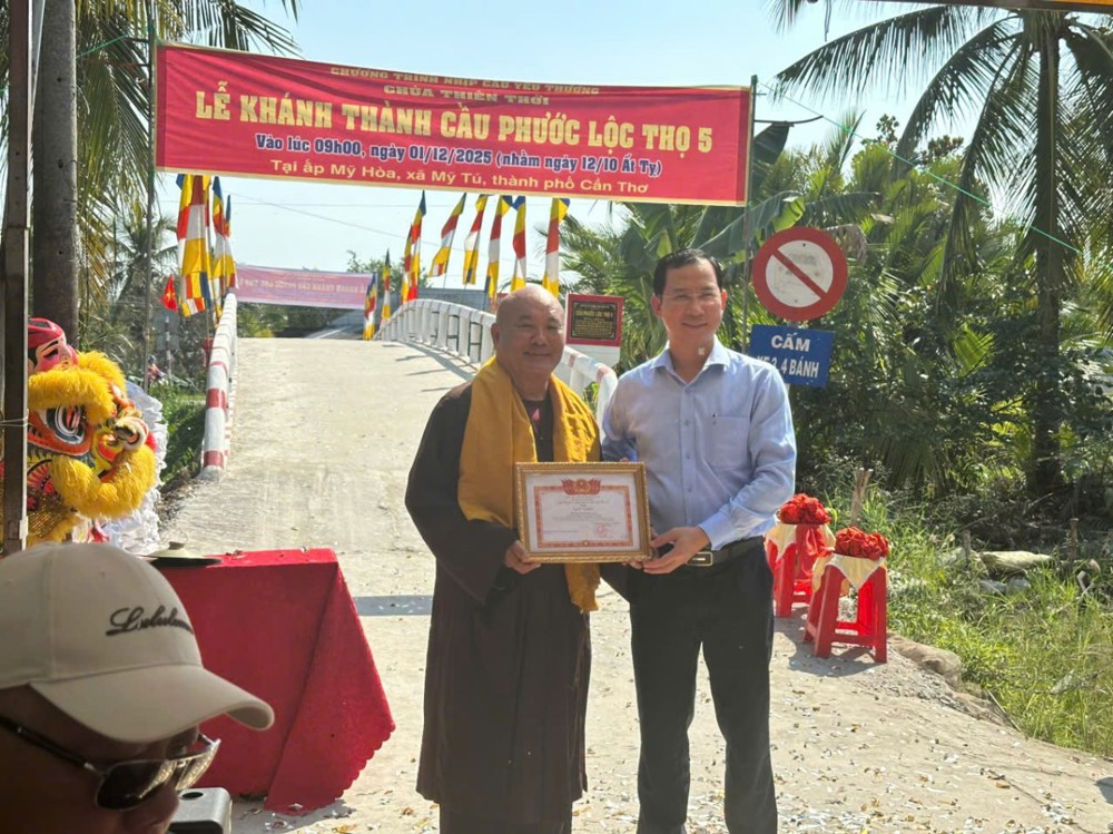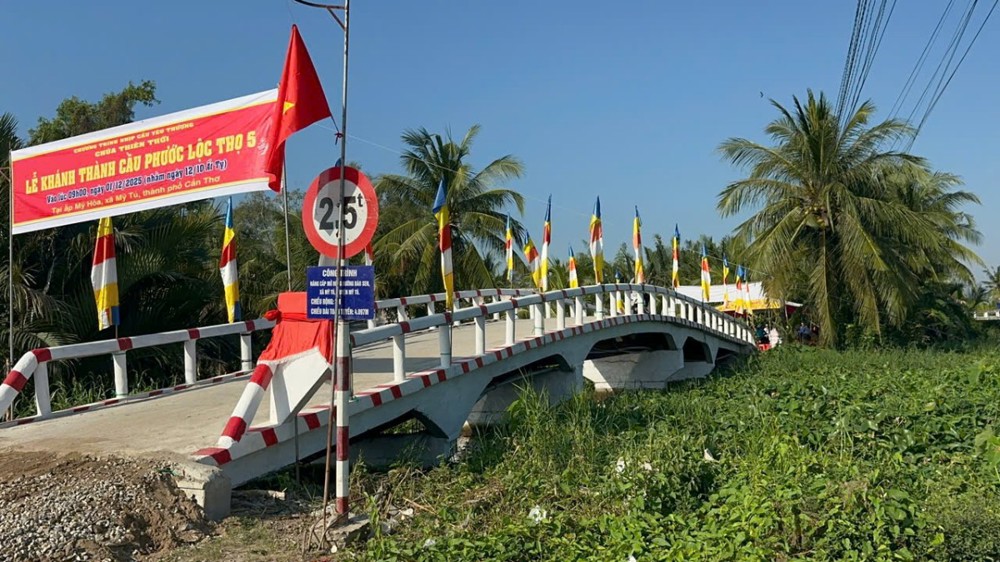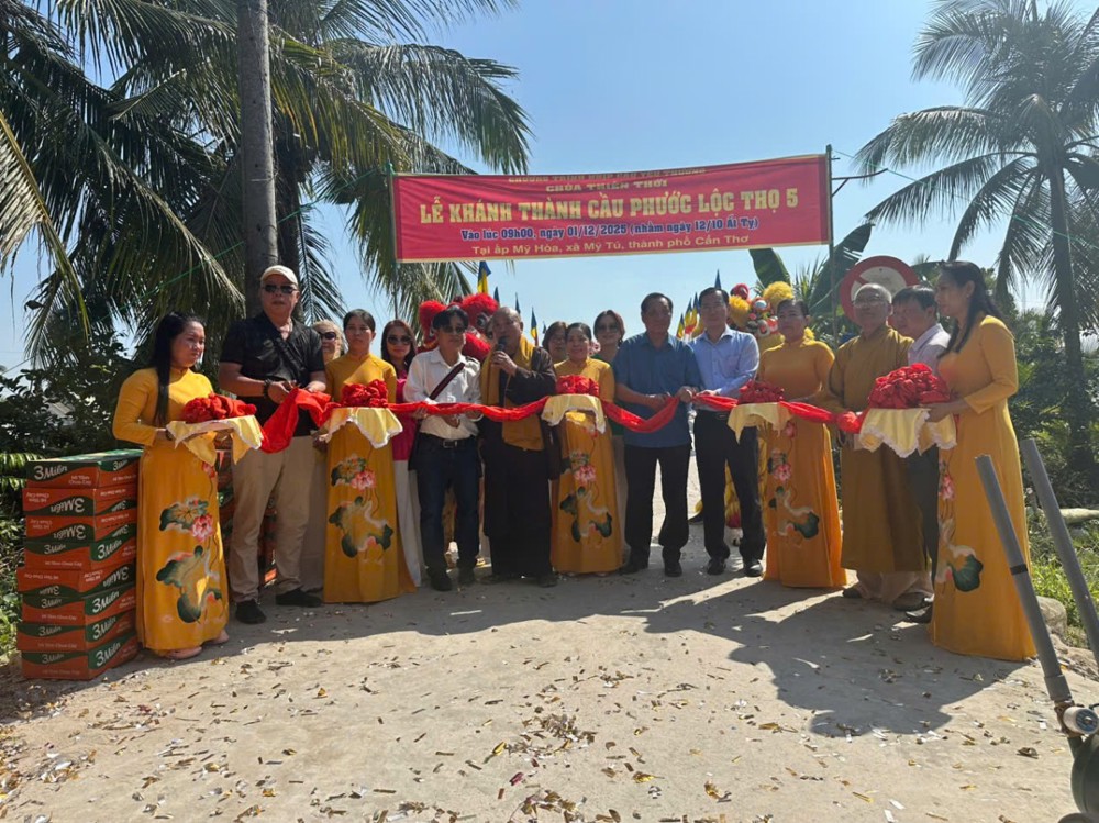 PSO – Sáng ngày 01/12/2025 (nhằm ngày 12/10 năm Ất Tỵ) “Nhịp cầu yêu thương” chùa Thiên Thới kết hợp chính quyền và nhà tài trợ tổ chức khánh thành cầu bê tông nông thôn; đồng thời tặng quà cho bà con với tổng trị giá hơn 500 triệu đồng.