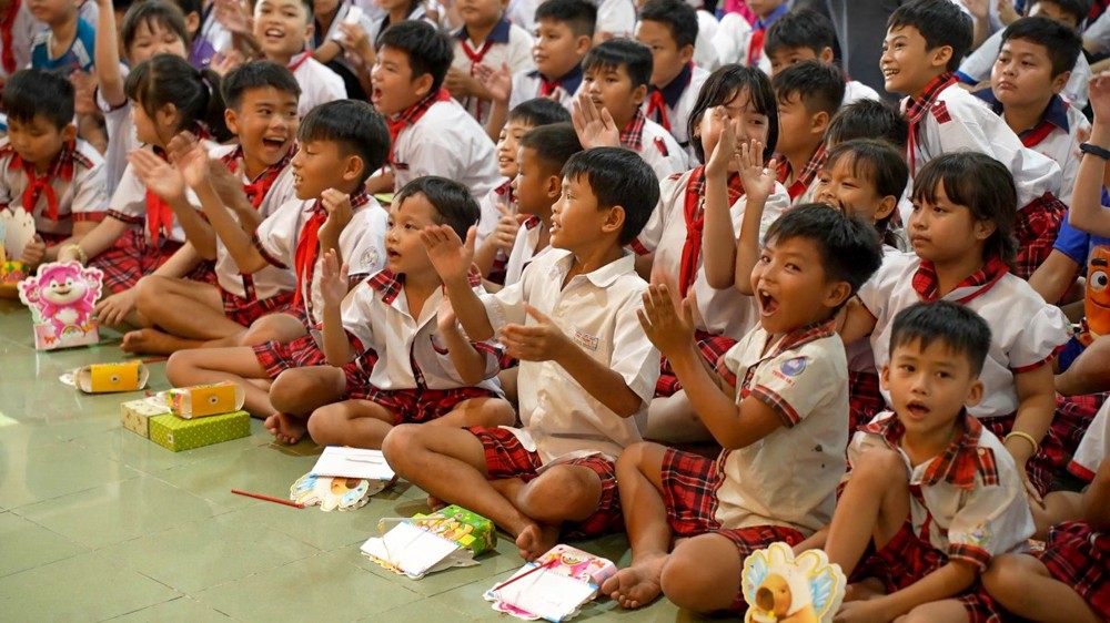 Không khí đêm hội thêm rộn ràng với các tiết mục văn nghệ, múa lân, trò chơi dân gian, đố vui, giúp các em hiểu thêm về văn hóa truyền thống dân tộc, đồng thời tạo điều kiện giao lưu, gắn kết tình bạn.