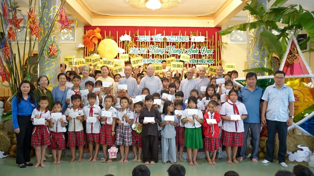 Tại chương trình, chư Tôn đức, quý mạnh thường quân và chính quyền đã trao 120 suất học bổng trị giá 90 triệu đồng cho học sinh, sinh viên. Bên cạnh đó, Ban tổ chức còn tặng hơn 500 lồng đèn và phần quà Trung thu cho các em thiếu nhi với tổng kinh phí hơn 25 triệu đồng.