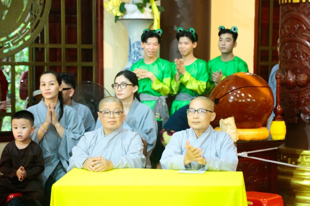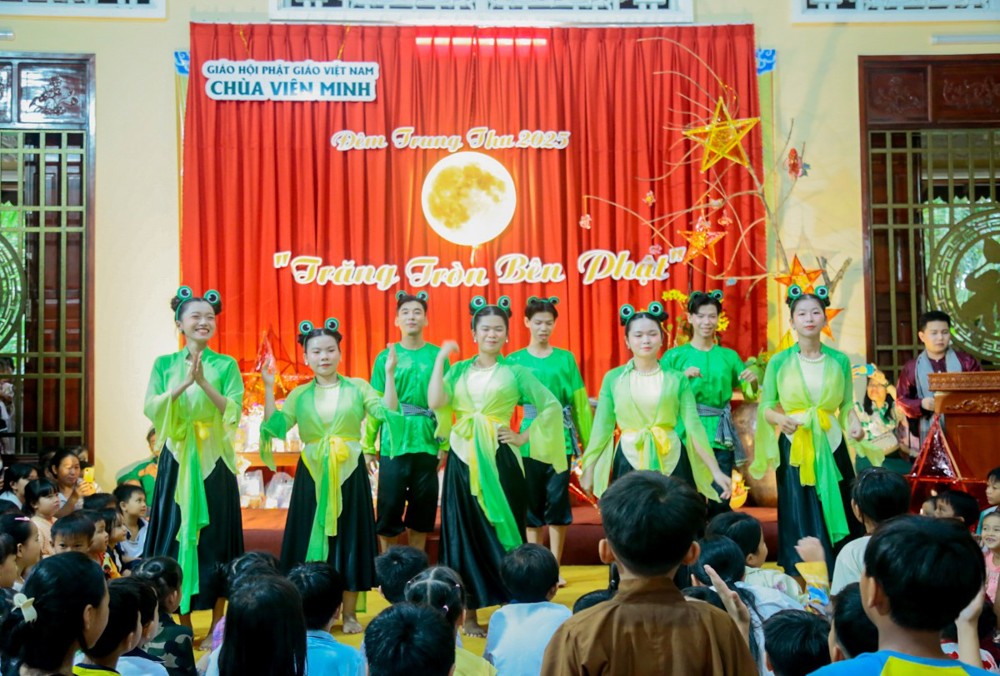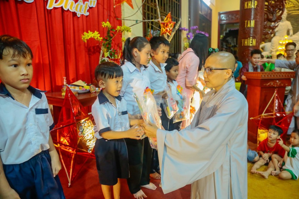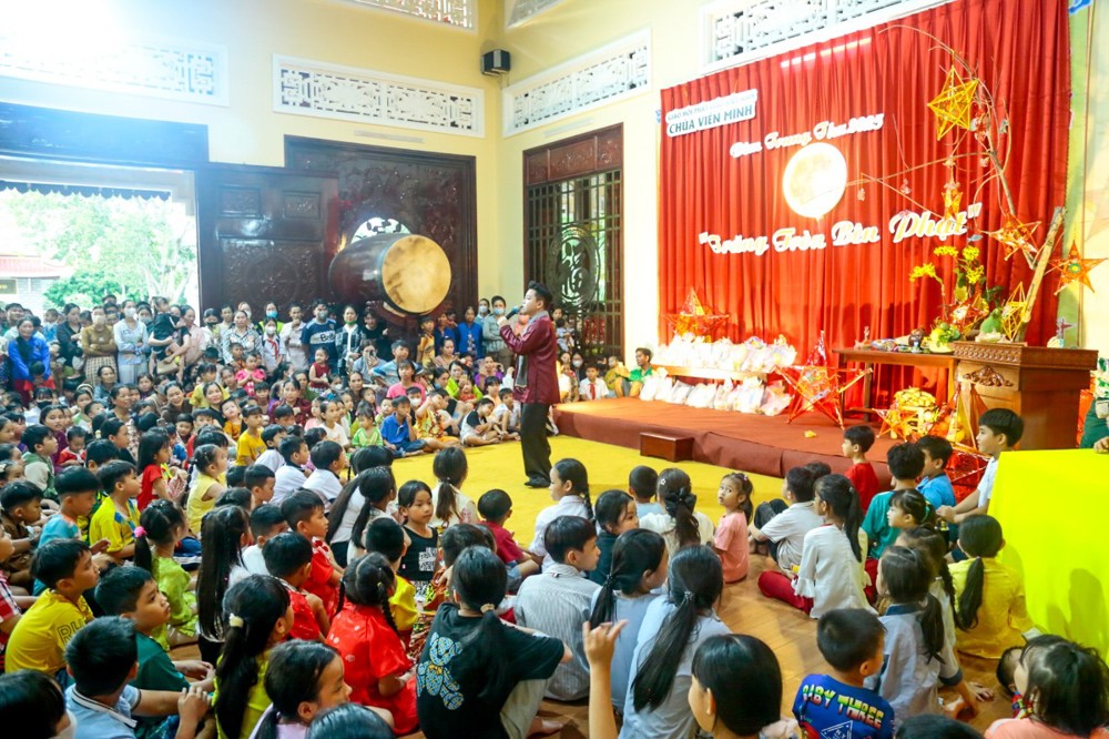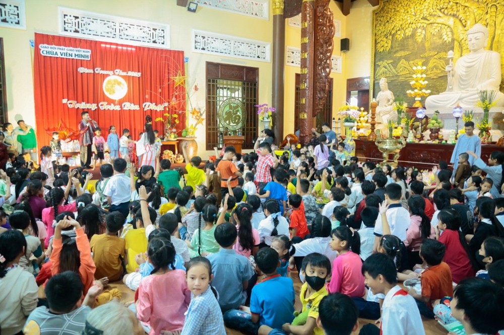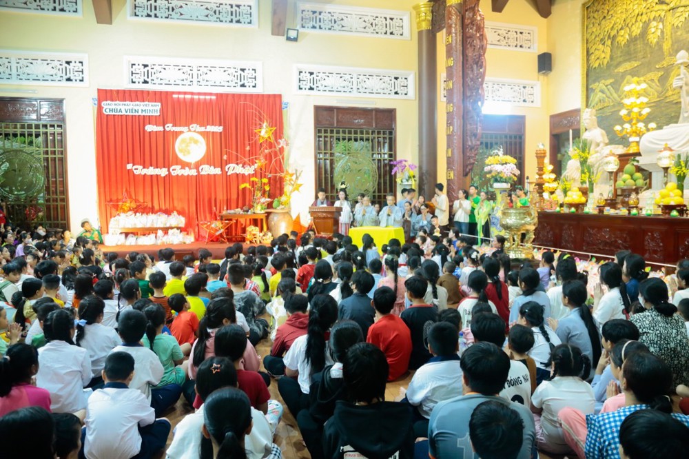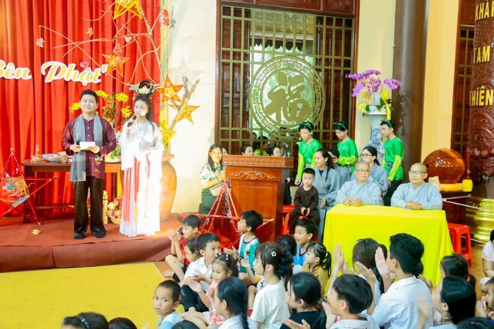 Buổi lễ với chủ đề: “Trăng tròn bên Phật” được diễn ra trong không gian ấm cúng, chan hòa tình thương. Từ sớm, hàng trăm em nhỏ đã háo hức tập trung tại chùa. Các hoạt động được tổ chức phong phú như: đố vui có thưởng cùng với Chị Hằng và Chú Cuội, những tiết mục văn nghệ sôi động vui tươi.