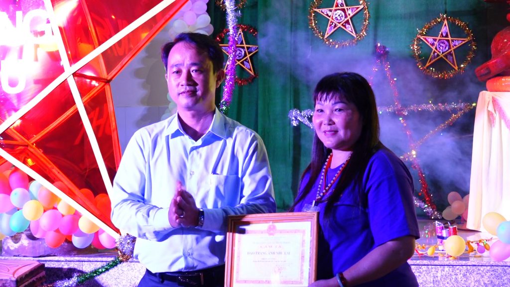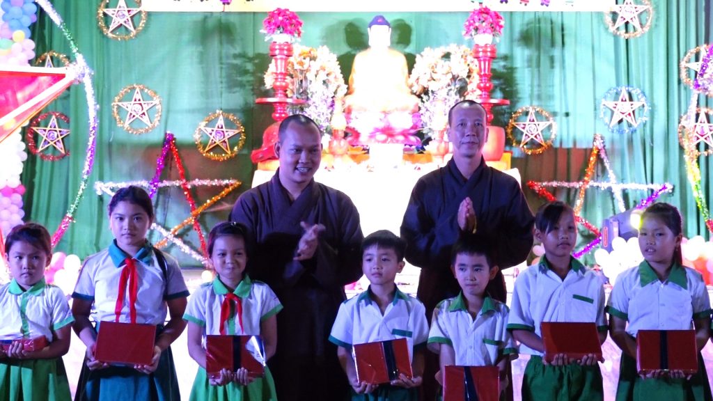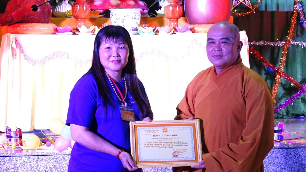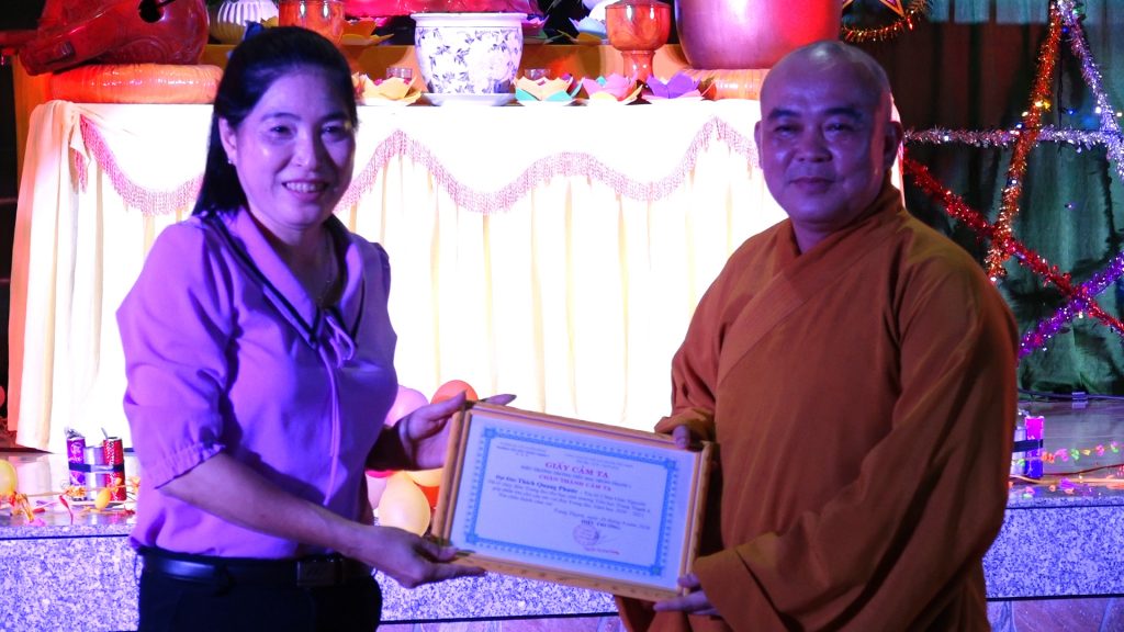 ĐĐ.Thích Quang Phước đã gửi trao giấy tuyên dương công đức đến các cán bộ giáo viên và các nhà thiện nguyện đã giúp đỡ đạo tràng tổ chức một đêm hội Trung thu lần thứ 8 của chùa được thành tựu viên mãn.