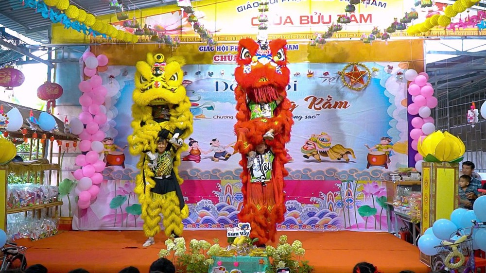 Đêm hội rực rỡ sắc màu với ánh đèn ông sao lung linh, tiếng trống múa lân rộn rã, những tiết mục văn nghệ sôi động và loạt câu đố vui nhộn từ chú Cuội tinh nghịch cùng chị Hằng duyên dáng.