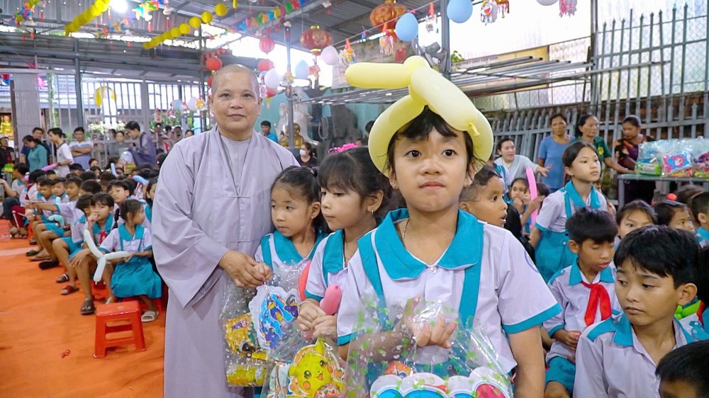 Dưới sự chỉ đạo của Ni sư Thích Nữ Liên Tâm – Viện chủ chùa Bửu Tâm, cùng sự hướng dẫn của Sư cô Thích Nữ Trung Mai – Ủy viên Ban Từ thiện xã hội, Trụ trì chùa Bửu Tâm, chương trình được tổ chức với sự phối hợp chặt chẽ giữa chính quyền địa phương, các trường học, quý mạnh thường quân và các nhà hảo tâm. Trung Thu năm nay không chỉ là dịp trao gửi những món quà nghĩa tình, mà còn là cơ hội thắp sáng ngọn lửa đoàn viên, kết nối cộng đồng và nuôi dưỡng tâm hồn trẻ thơ.