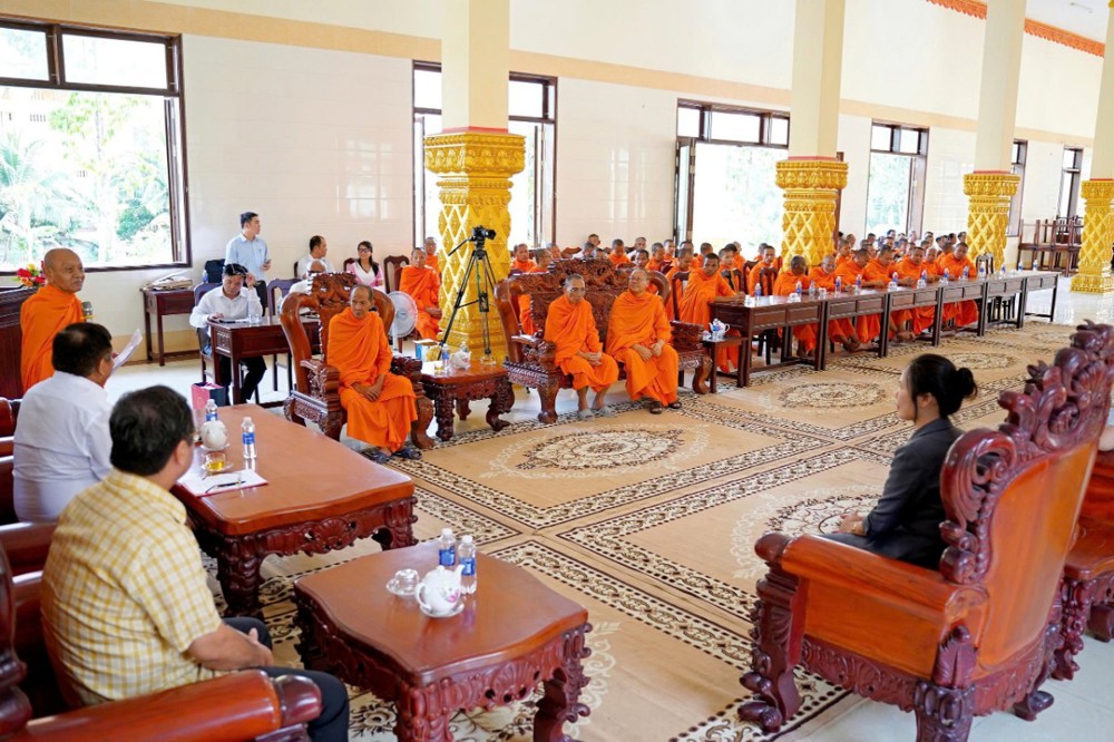 Tại buổi gặp gỡ, đại diện phái đoàn gửi lời chúc mừng năm mới đến chư Tôn đức và đồng bào Phật tử Khmer; đồng thời ghi nhận vai trò của Học viện trong công tác đào tạo, bảo tồn văn hóa Phật giáo Nam tông Khmer. Phái đoàn tiếp thu các kiến nghị và bày tỏ sẽ xem xét hỗ trợ trong thời gian tới.