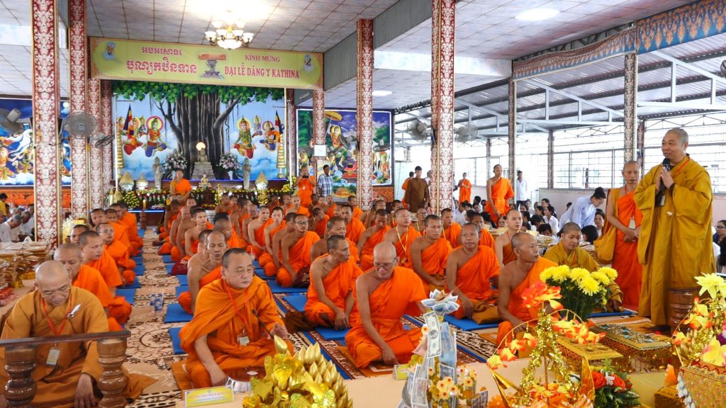 Sau phần ban pháp thí, TT. Thích Thọ Lạc đã thay lời gia đình đại thí chủ tác bạch cúng dường dâng y Kathina lên chư Tôn thiền đức chứng minh, quý Phật tử đã cùng chung hùn phần phước báu thanh cao này đồng thời cung thỉnh quý chư Tôn đức giáo phẩm tụng kinh cầu an và hồi hướng phước báu đến thân quyến. Trong đợt dâng y này Ban Văn hóa TƯ GHPGVN cũng đã triển khai đề án “Pháp phục Phật giáo Việt Nam thống nhất trong đa dạng” lên chư Tôn đức đồng thời đã dâng 100 bộ y đến Học viện PGNT Khmer.