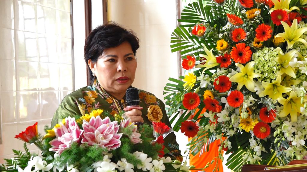 Đại thí chủ bà Lê Thị Giàu, phát biểu tại buổi lễ